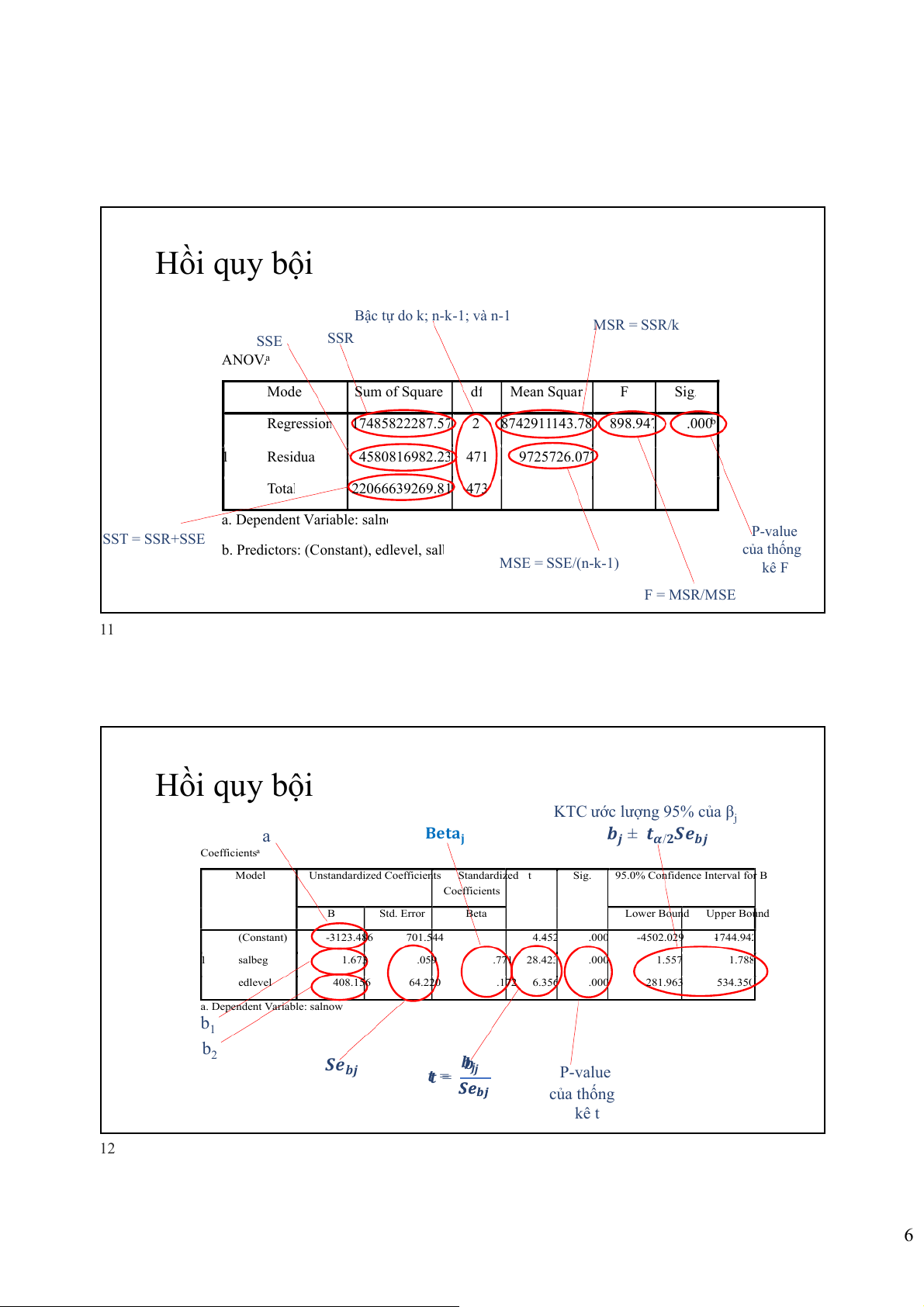 b. Predictors: (Constant), edlevel, salb của thống MSE = SSE/(n-k-1) kê F F = MSR/MSE 11 Hồi quy bội