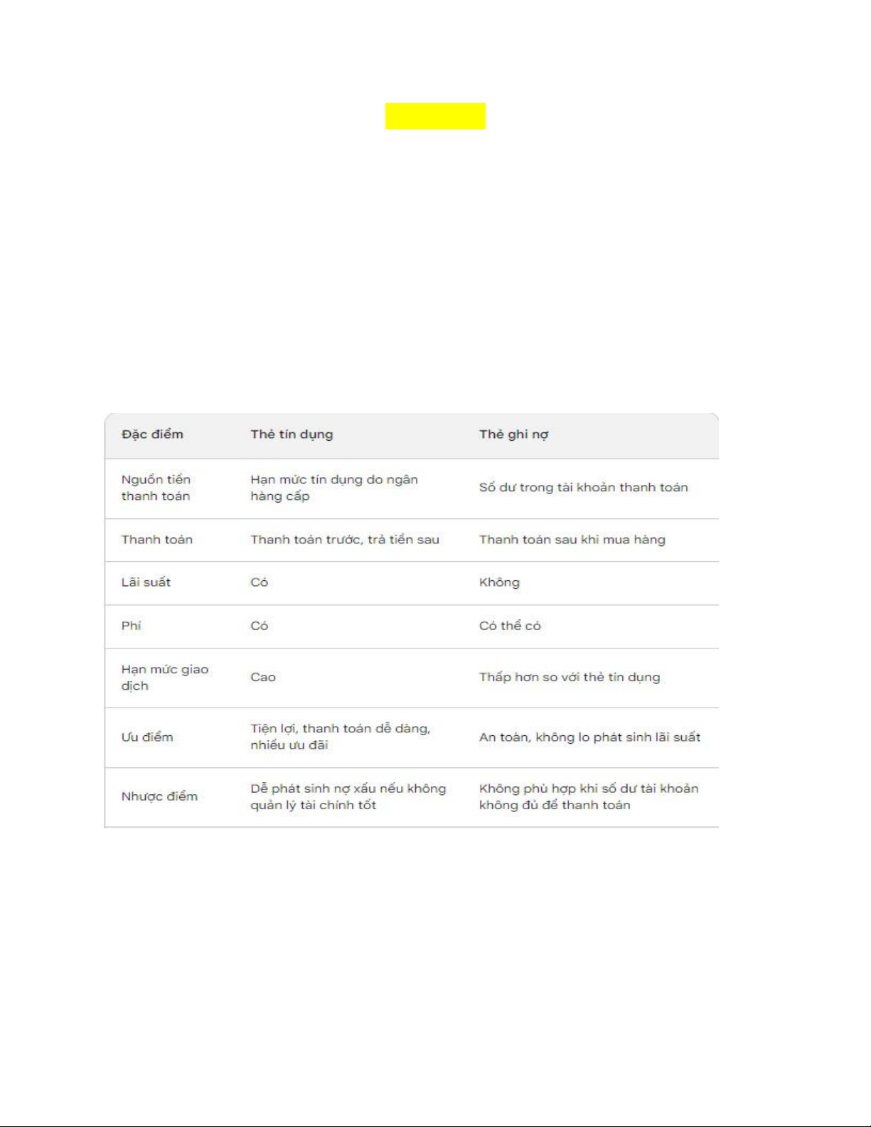 Câu 9: Hãy trình bày các hiểu biết về thẻ tín dụng là gì? Hãy phân biệt thẻ tín dụng và thẻ ghi nợ?