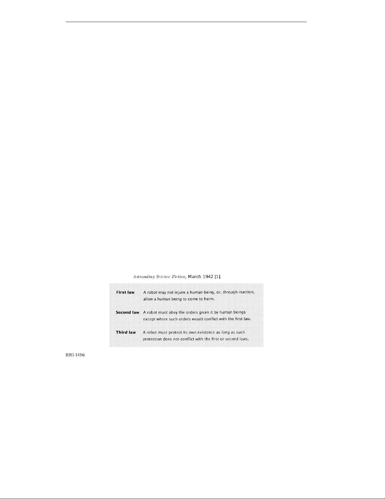Fig. 1. Isaac Asimov’s famous “three laws of robotics” appeared explicitly for the first time in his short story