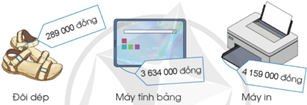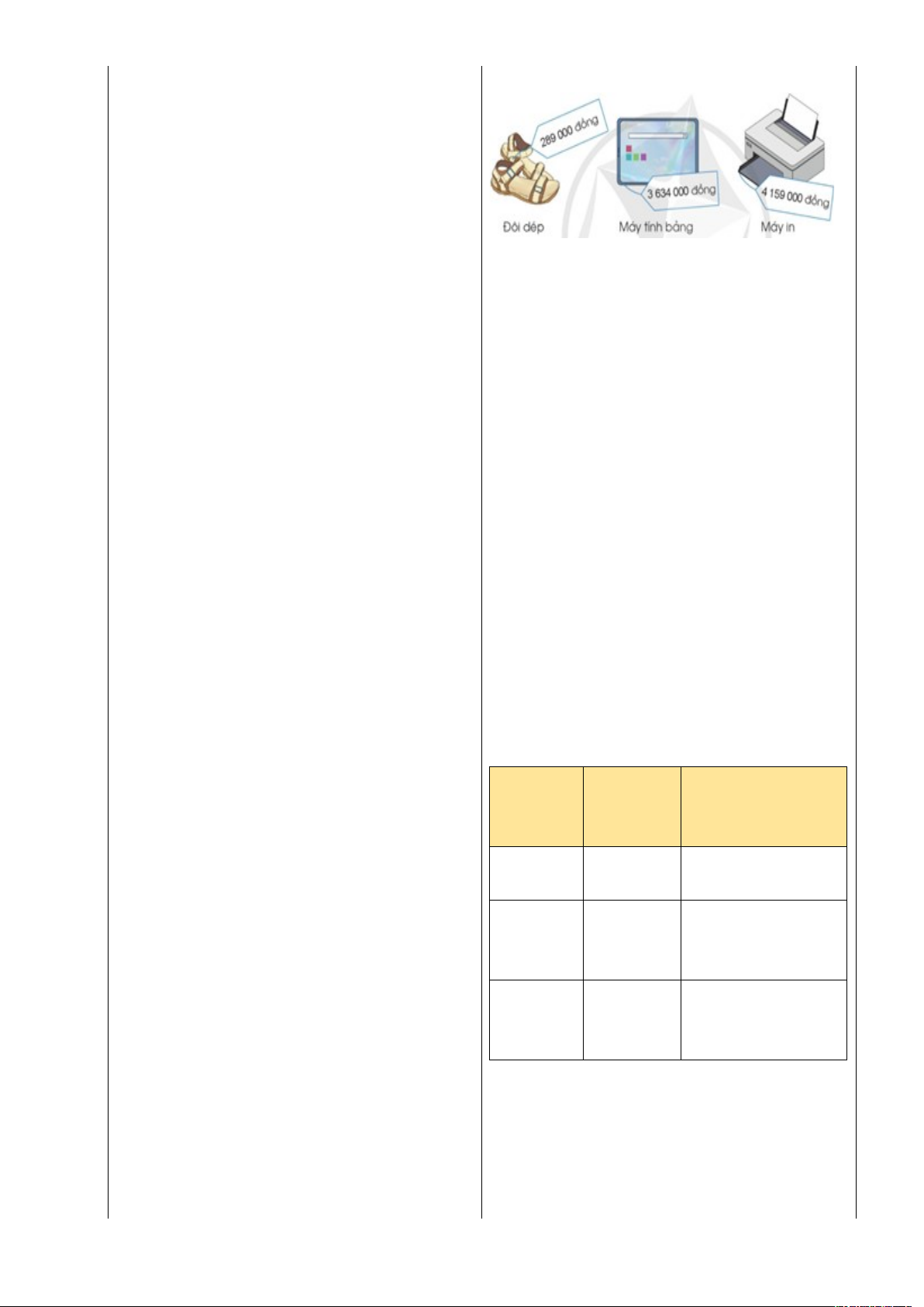 - Vậy số 289 000 đồng gần số nào? Khi bán giá của đôi dép làm tròn lên đến bao nhiêu đồng? | - Ta thấy số 289 000 gần với số 300 000 hơn số 200 000. Vậy giá bán của đôi dép khi làm tròn đến hàng trăm nghìn là 300 000 đồng. | ||||||||||||