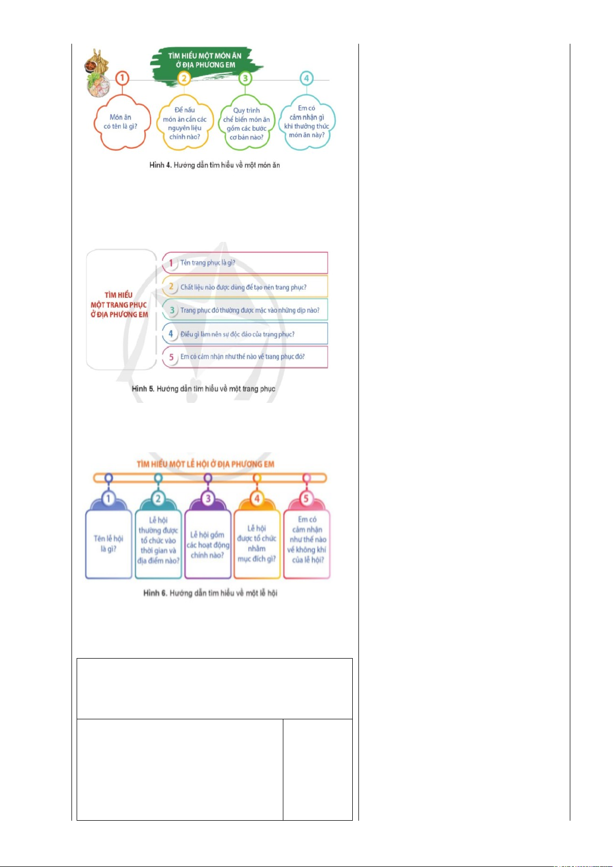 + Lựa chọn và giới thiệu về một món ăn tiêu biểu ở địa phương em theo gợi ý của hình 4 (SHS tr.12).