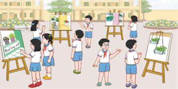 - GV Tổng phụ trách Đội giới thiệu nội dung triển lãm tranh tuyên truyền dự án Hành lang xanh, nhấn mạnh ý nghĩa của dự án đối với việc giữ gìn trường xanh, sạch, đẹp. | - HS lắng nghe lời giới thiệu của GV. |