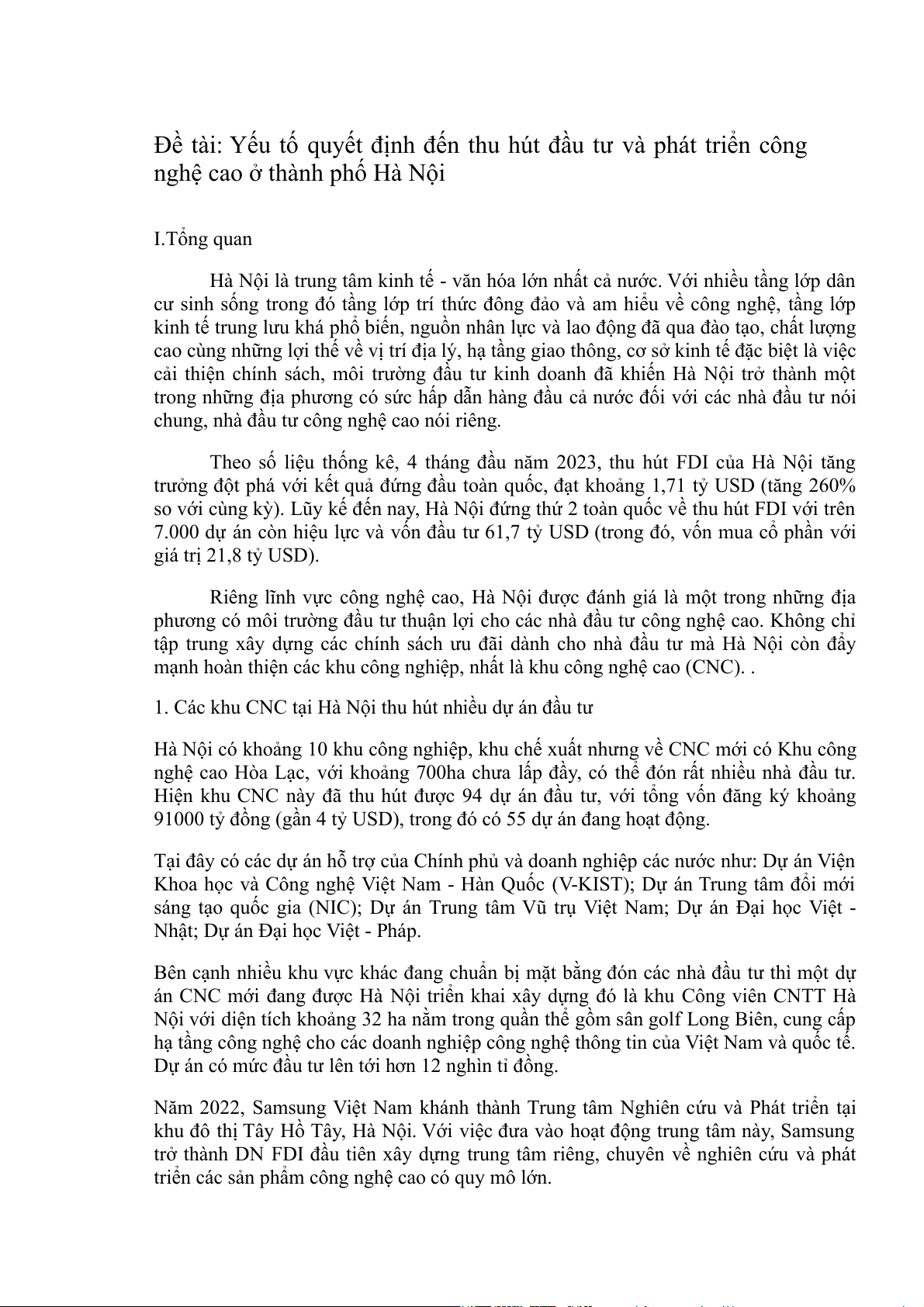 nghệ cao ở thành phố Hà Nội I.Tổng quan