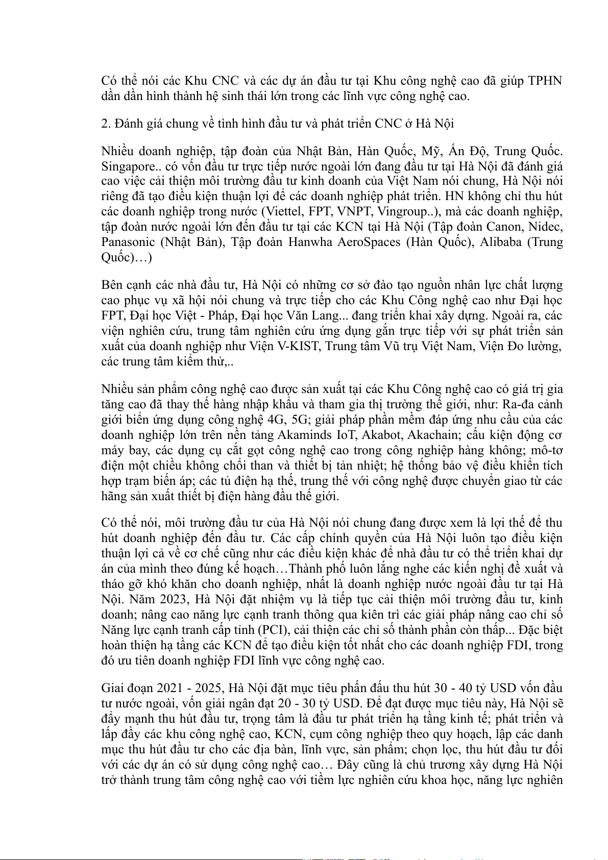 Nội. Năm 2023, Hà Nội đặt nhiệm vụ là tiếp tục cải thiện môi trường đầu tư, kinh