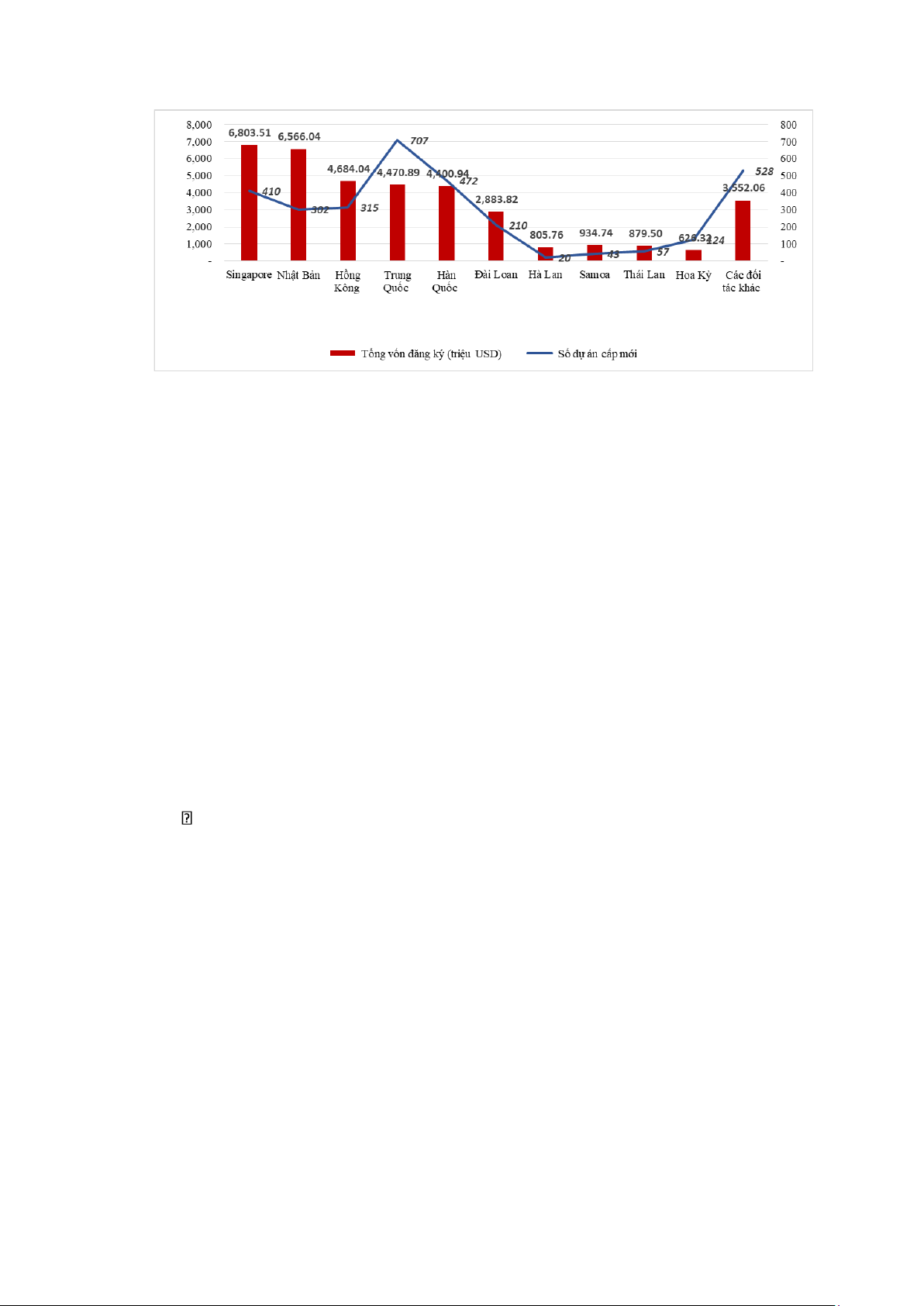 Xét theo đối tác đầu tư, trong năm nay có 6 quốc gia, vùng lãnh thổ thuộc