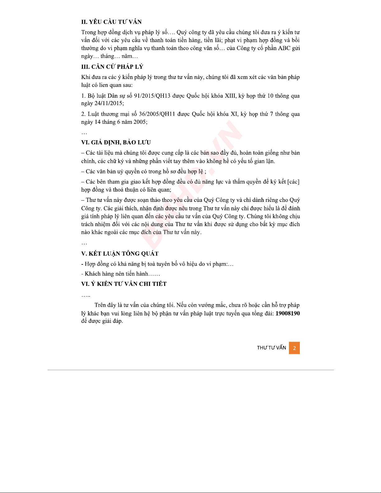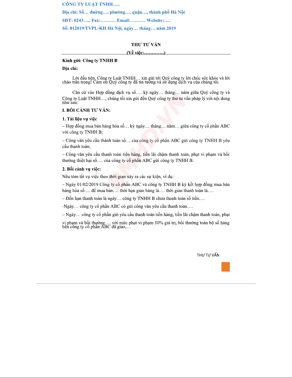 Thư Tư Vấn Pháp Lý Mẫu LS3 - Tư Vấn Thanh Toán Hợp Đồng