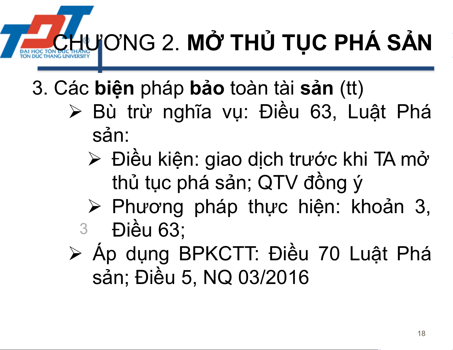 ➢ Áp dụng BPKCTT: Điều 70 Luật Phá sản; Điều 5, NQ 03/2016 18