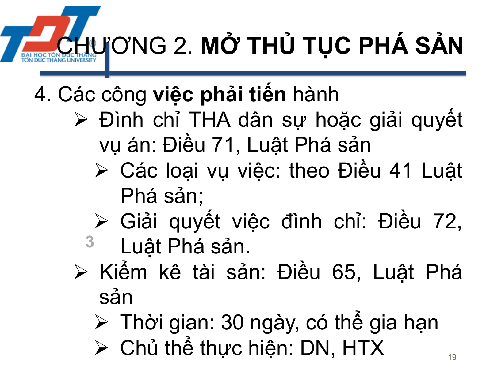 ➢ Giải quyết việc đình chỉ: Điều 72, 3 Luật Phá sản.