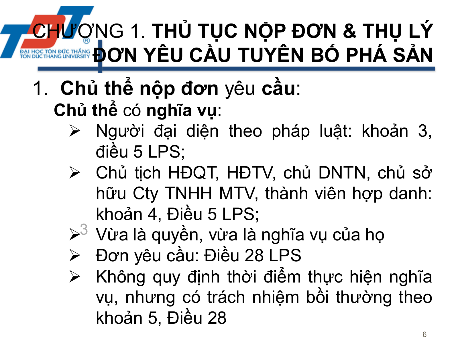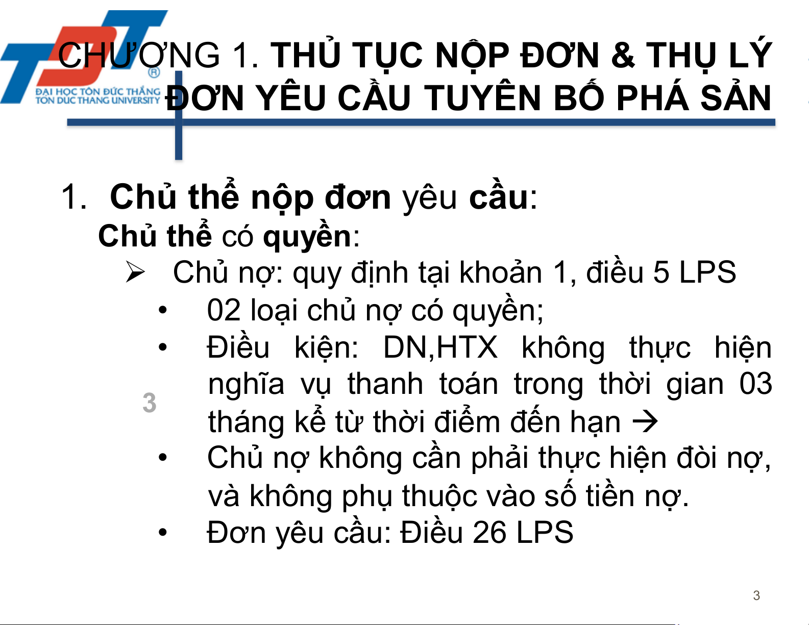 • Chủ thể yêu cầu: DN , HTX, chủ nợ