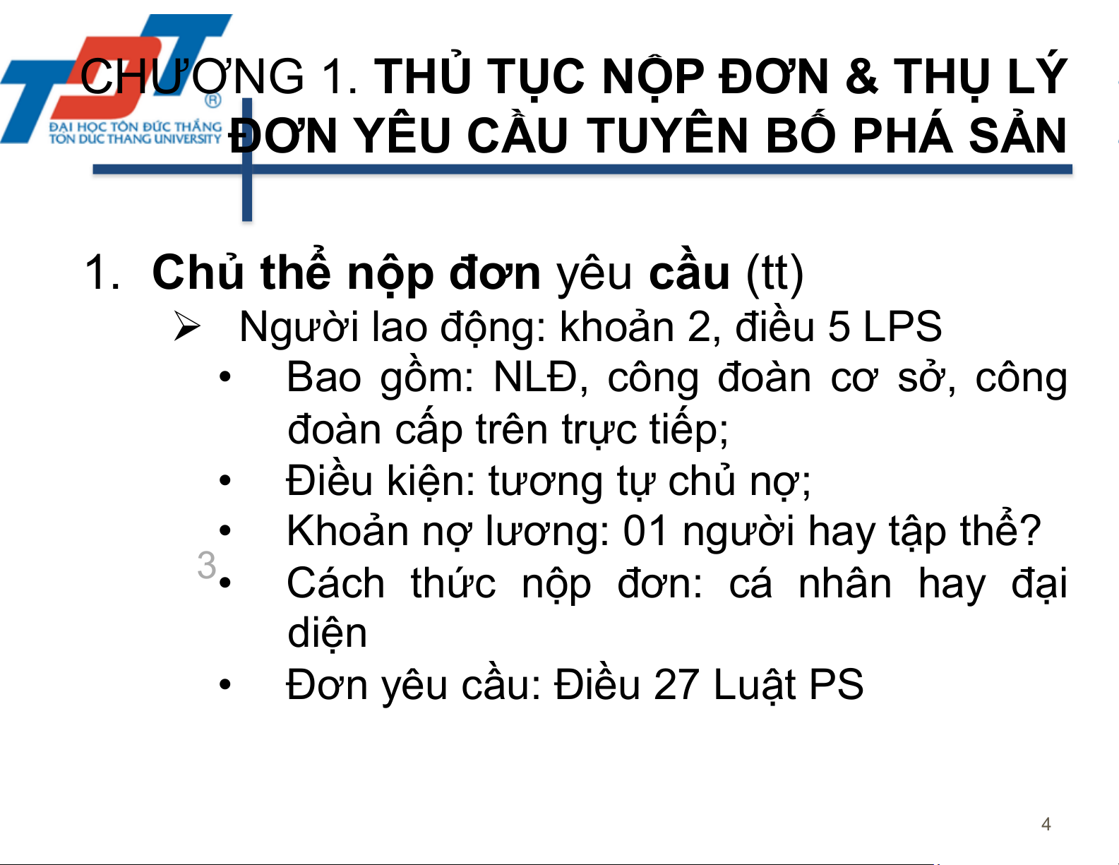 Điều kiện: tương tự chủ nợ; • Khoản nợ lương: 0 1 người hay tập thể?