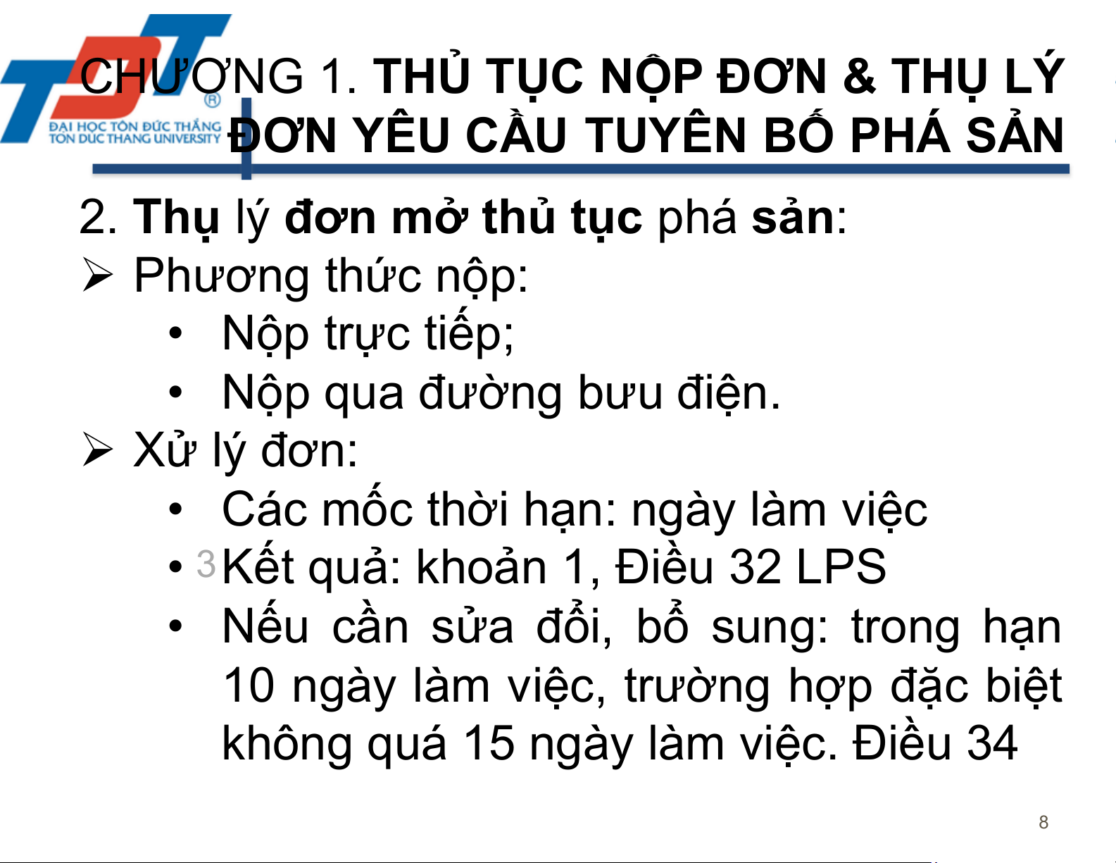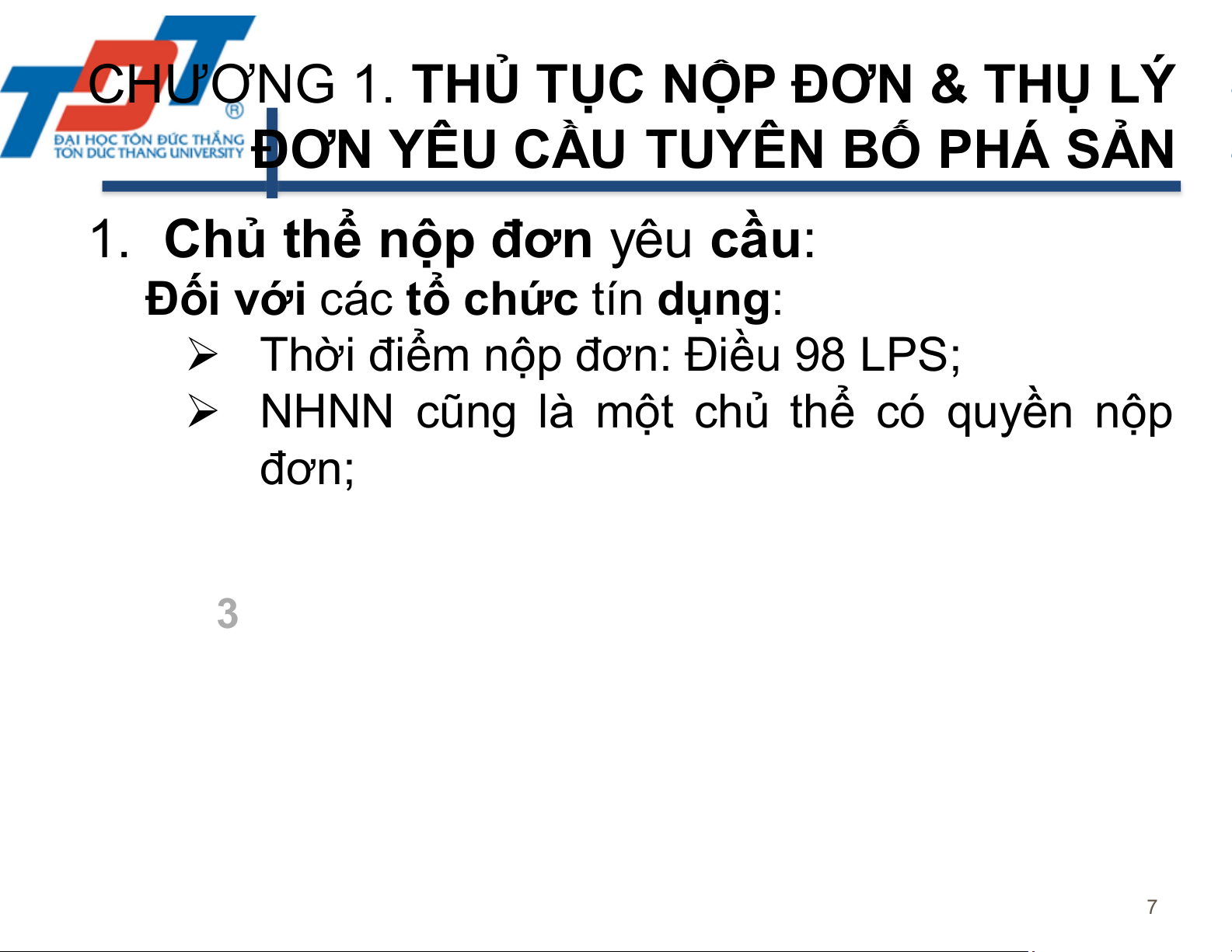 c tổ chức tín dụng: ➢ Thời điểm nộ p đơn: Điều 9 8 LPS; ➢