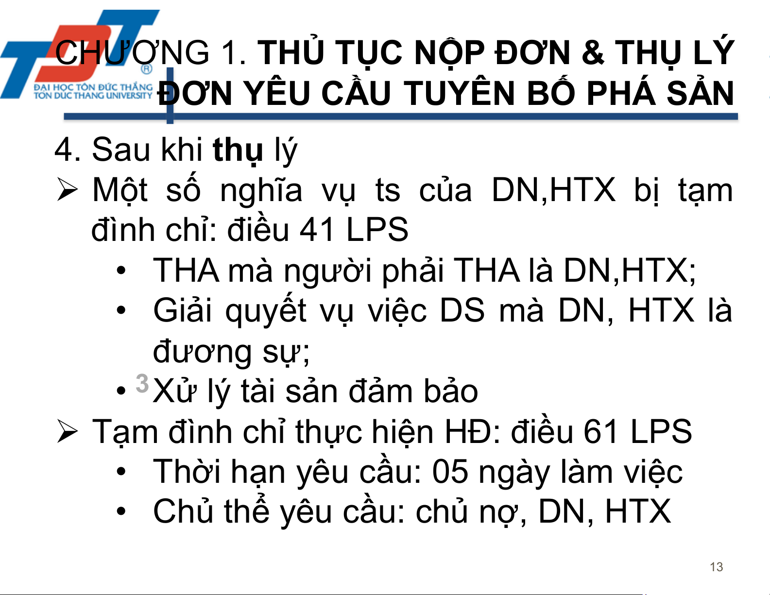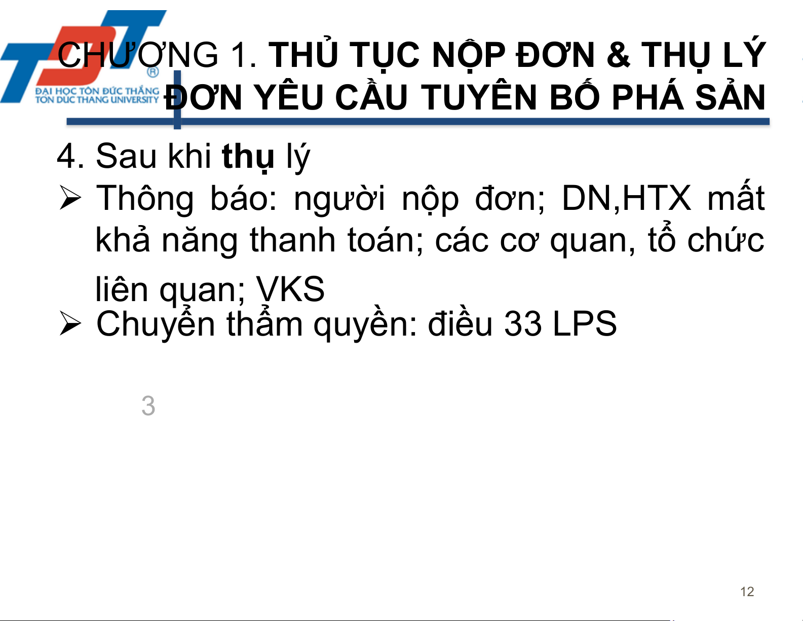 ĐƠN YÊU CẦU TUYÊN BỐ PHÁ SẢN 4. Sau khi thụ lý