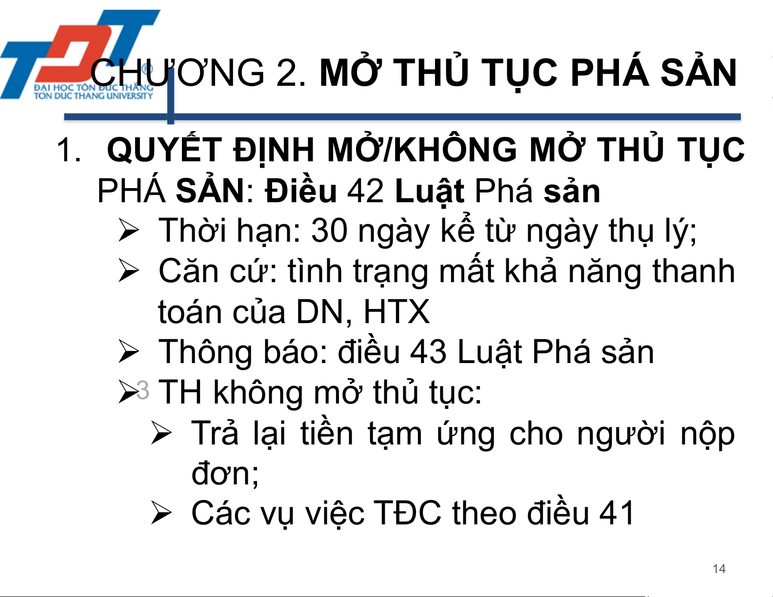 CHƯƠNG 2. MỞ THỦ TỤC PHÁ SẢN