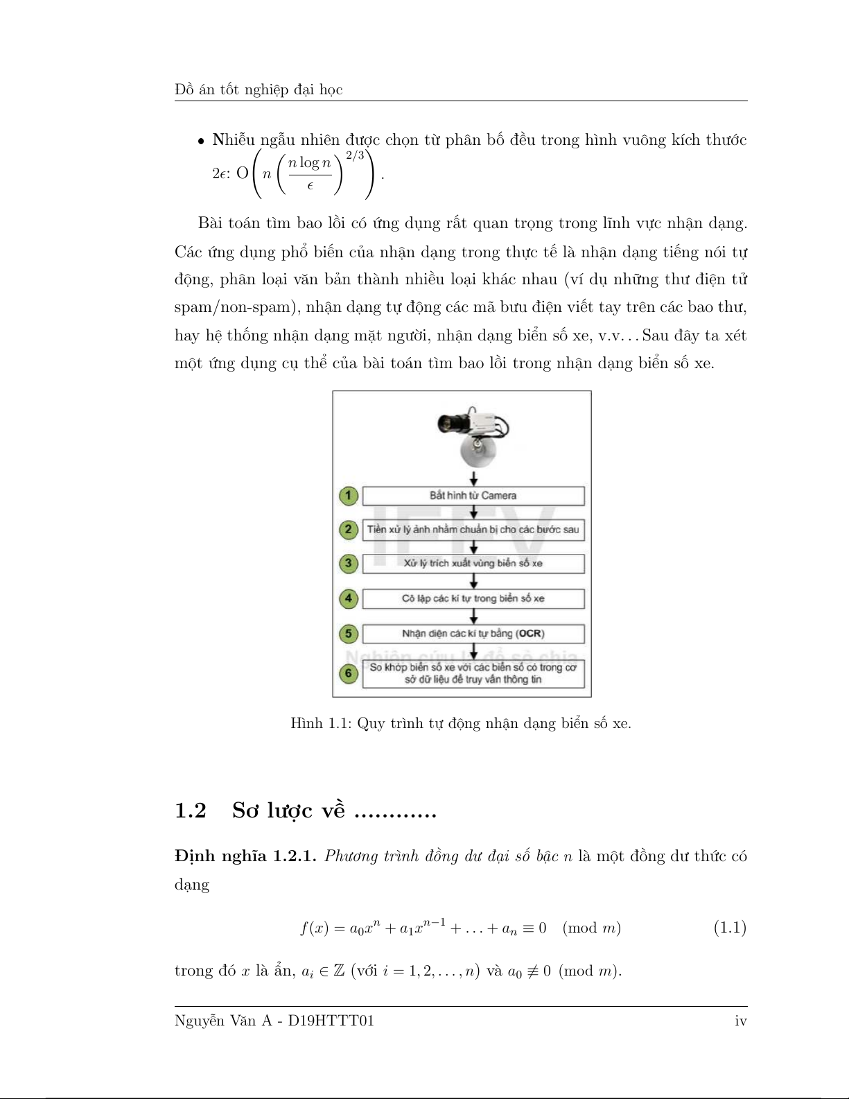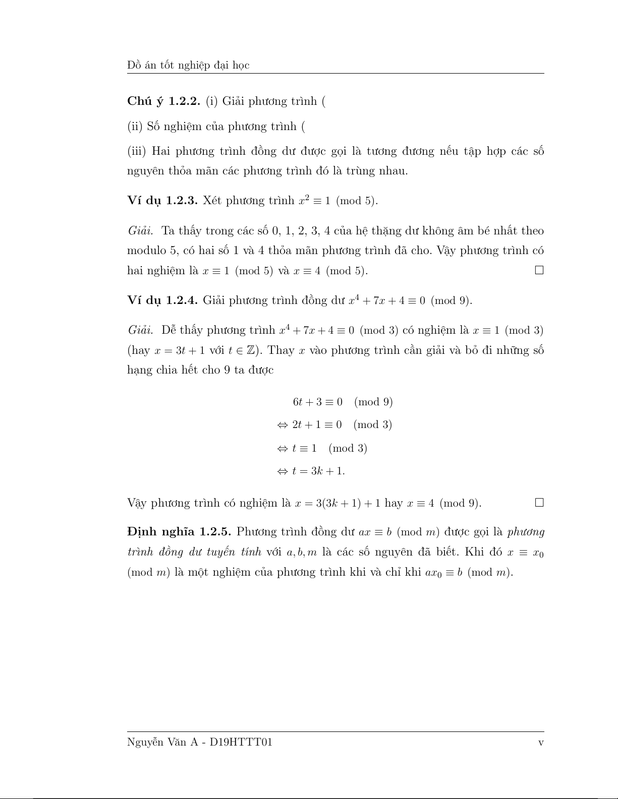 trong đó x là ẩn, ai ∈ Z (với i = 1, 2, . . . , n) và a0 6≡ 0 (mod m). Nguyễn Văn A - D19HTTT01 iv