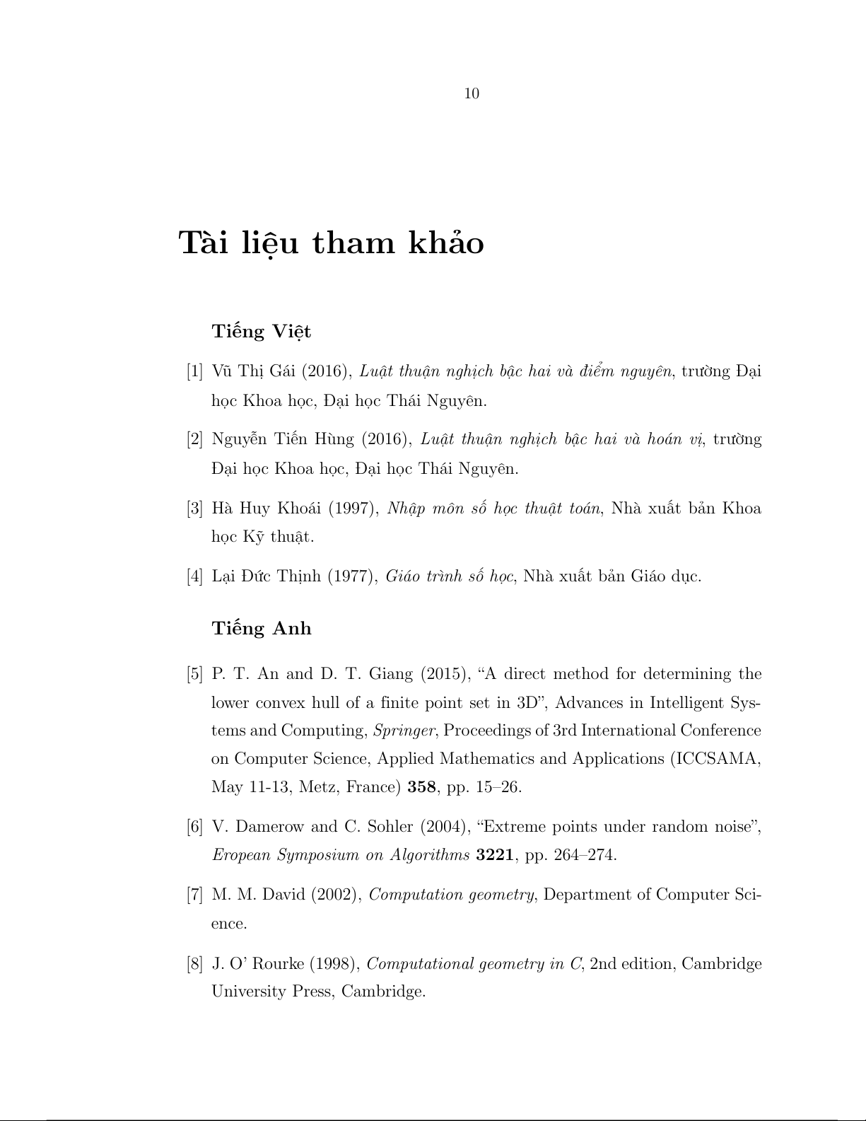 [3] Hà Huy Khoái (1997), Nhập môn số học thuật toán, Nhà xuất bản Khoa học Kỹ thuật.