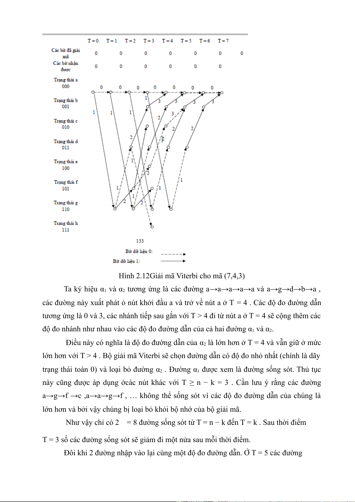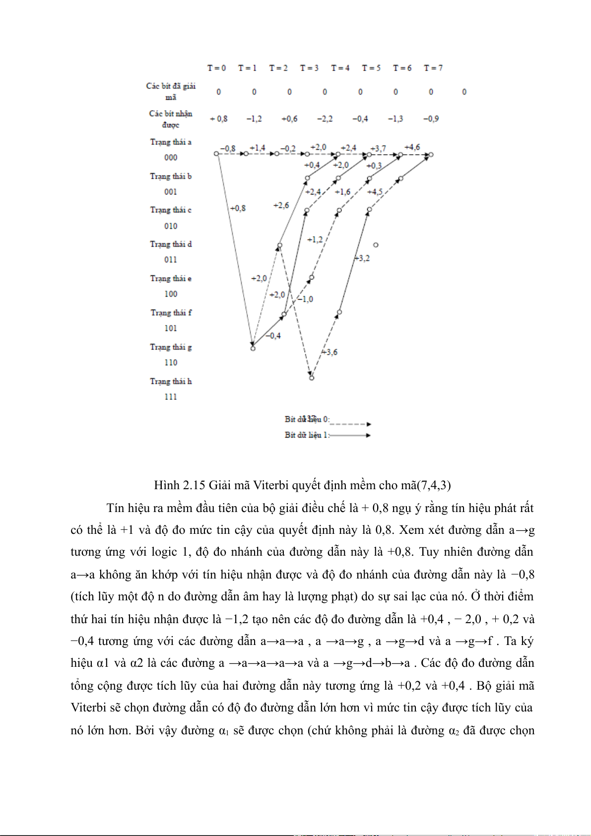 Hình 2.12 ghi "lịch sử " của các đường dẫn được chọn bởi bộ mã Viterbi cho mã (7, 4, 3).