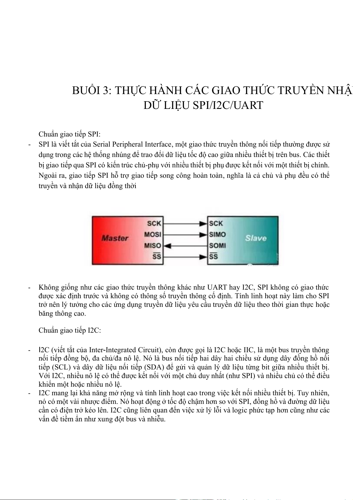 BUỔI 3: THỰC HÀNH CÁC GIAO THỨC TRUYỀN NHẬN DỮ LIỆU SPI/I2C/UART Chuẩn giao tiếp SPI: