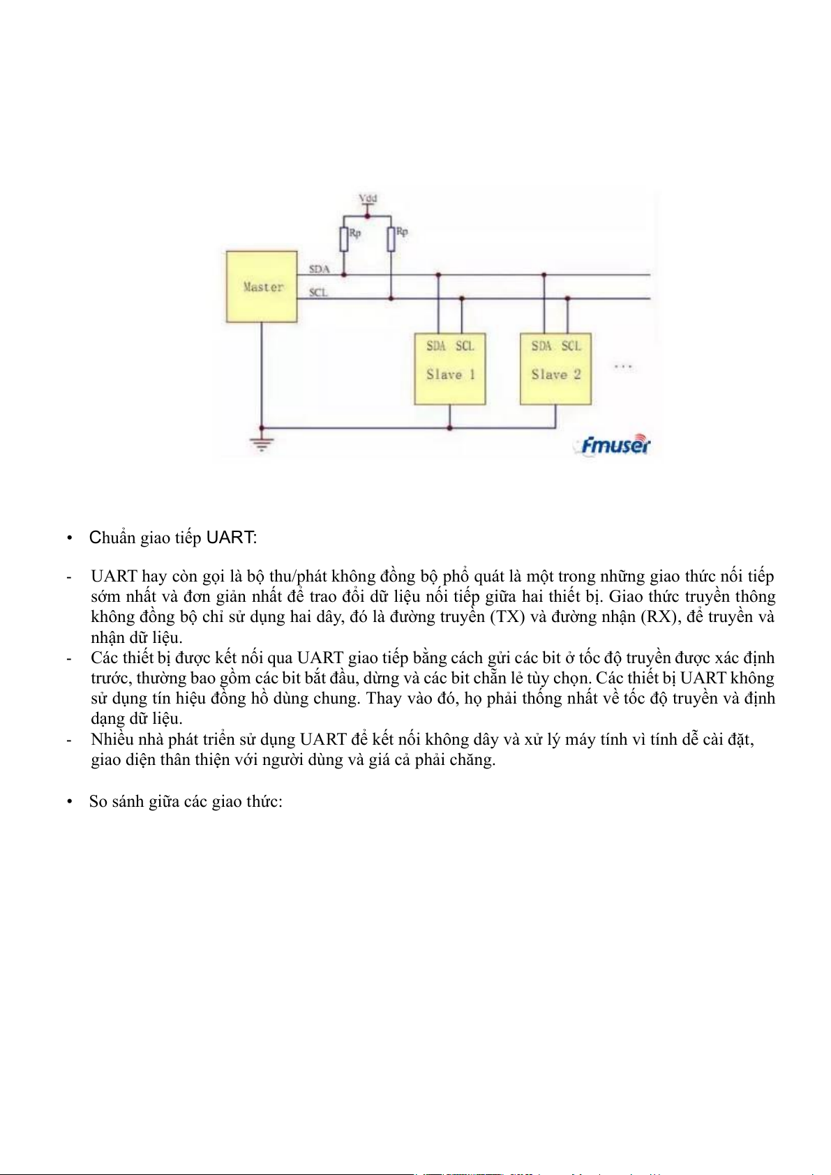 vấn đề tiềm ẩn như xung đột bus và nhiễu. • Chuẩn giao tiếp UART: