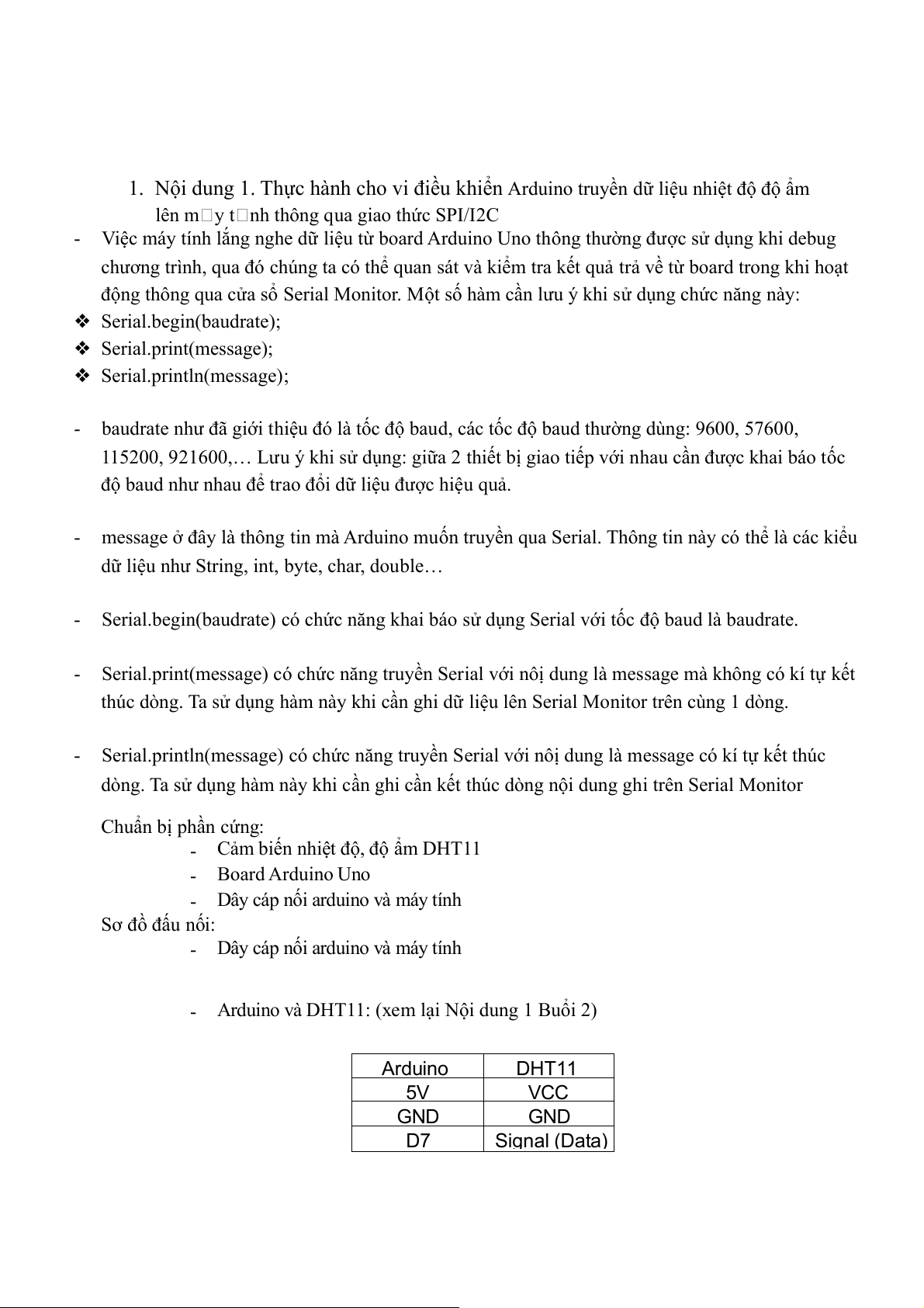 1. Nội dung 1. Thực hành cho vi điều khiển Arduino truyền dữ liệu nhiệt độ độ ẩm
