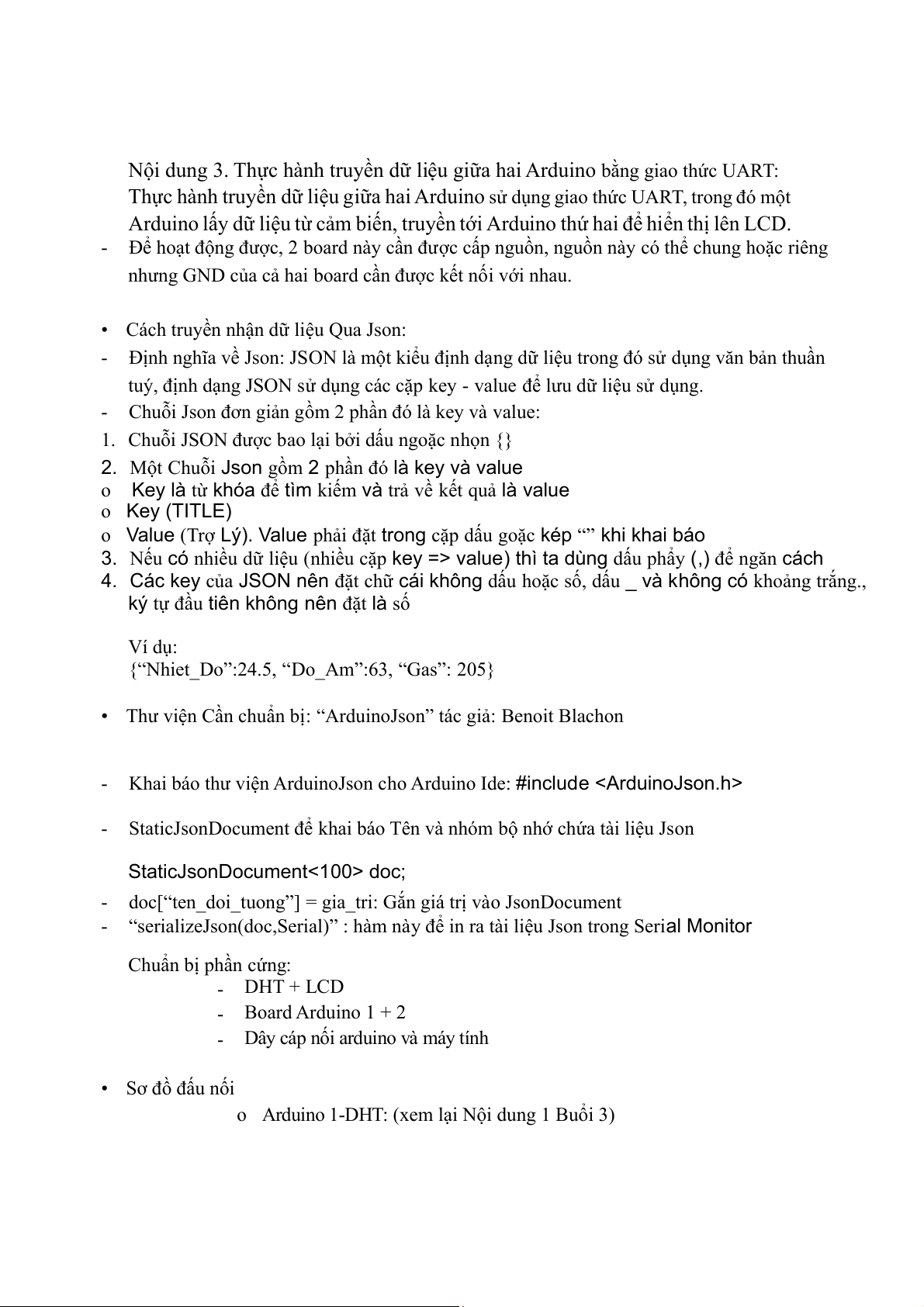 - “serializeJson(doc,Serial)” : hàm này để in ra tài liệu Json trong Serial Monitor Chuẩn bị phần cứng: - DHT + LCD - Board Arduino 1 + 2