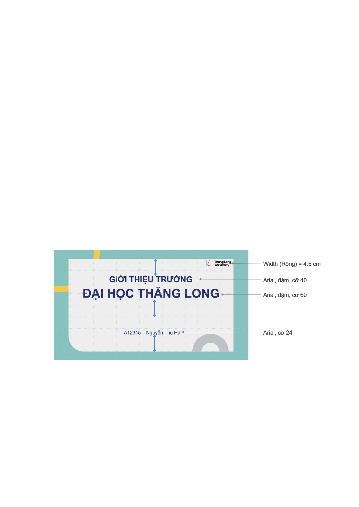 - Logo: chiều rộng 4.5 cm, đặt đúng vị trí ở các kiểu trang thường dùng như mẫu.