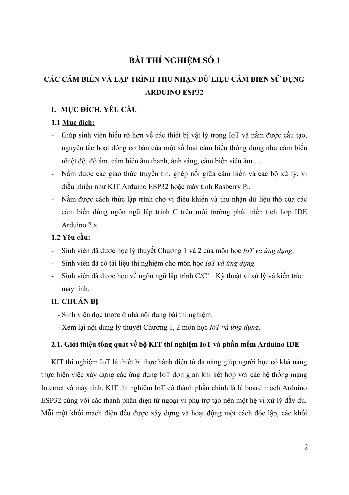 - Sinh viên đã có tài liệu thí nghiệm cho môn học IoT và ứng dụng.