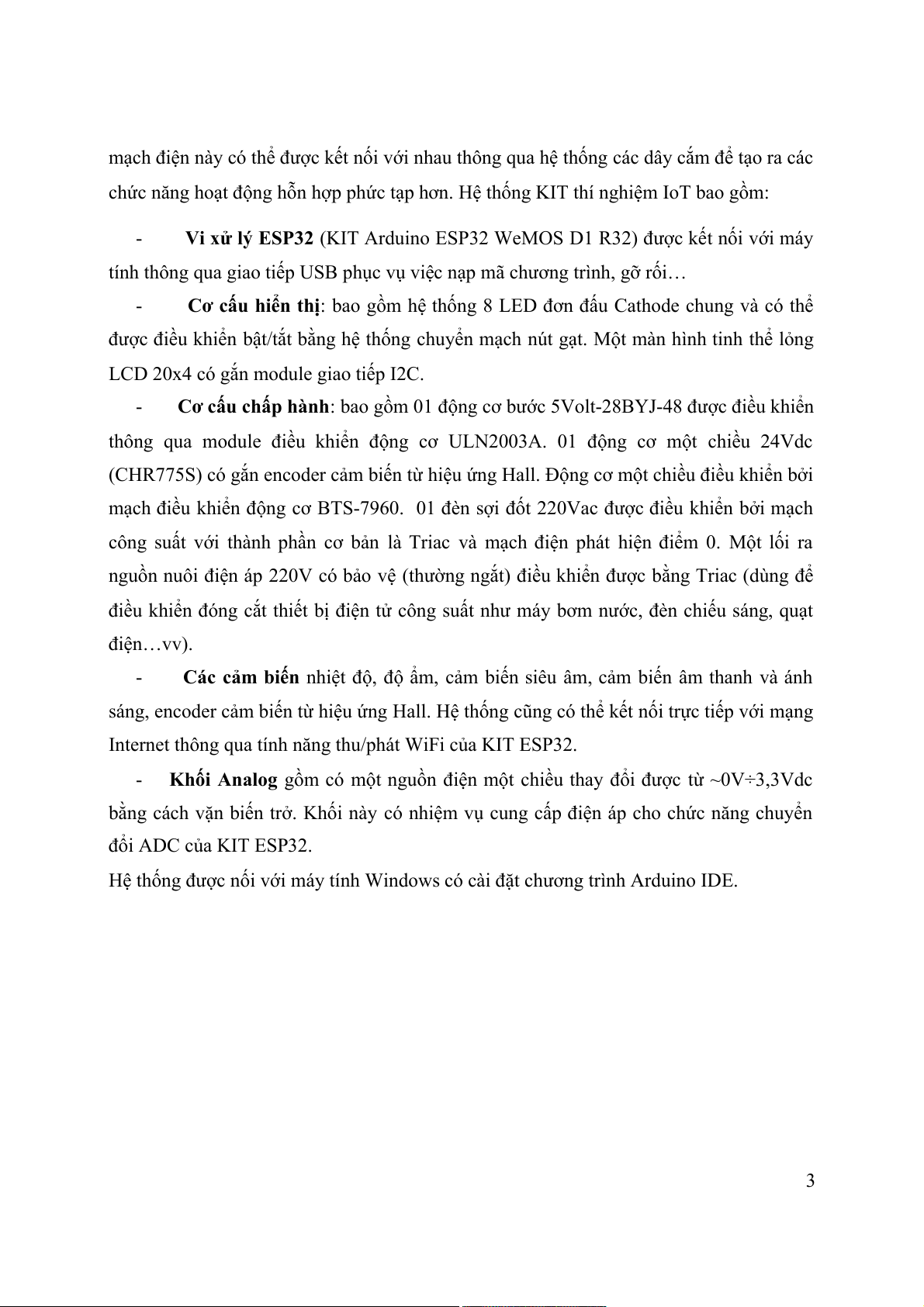 chức năng hoạt động hỗn hợp phức tạp hơn. Hệ thống KIT thí nghiệm IoT bao gồm: