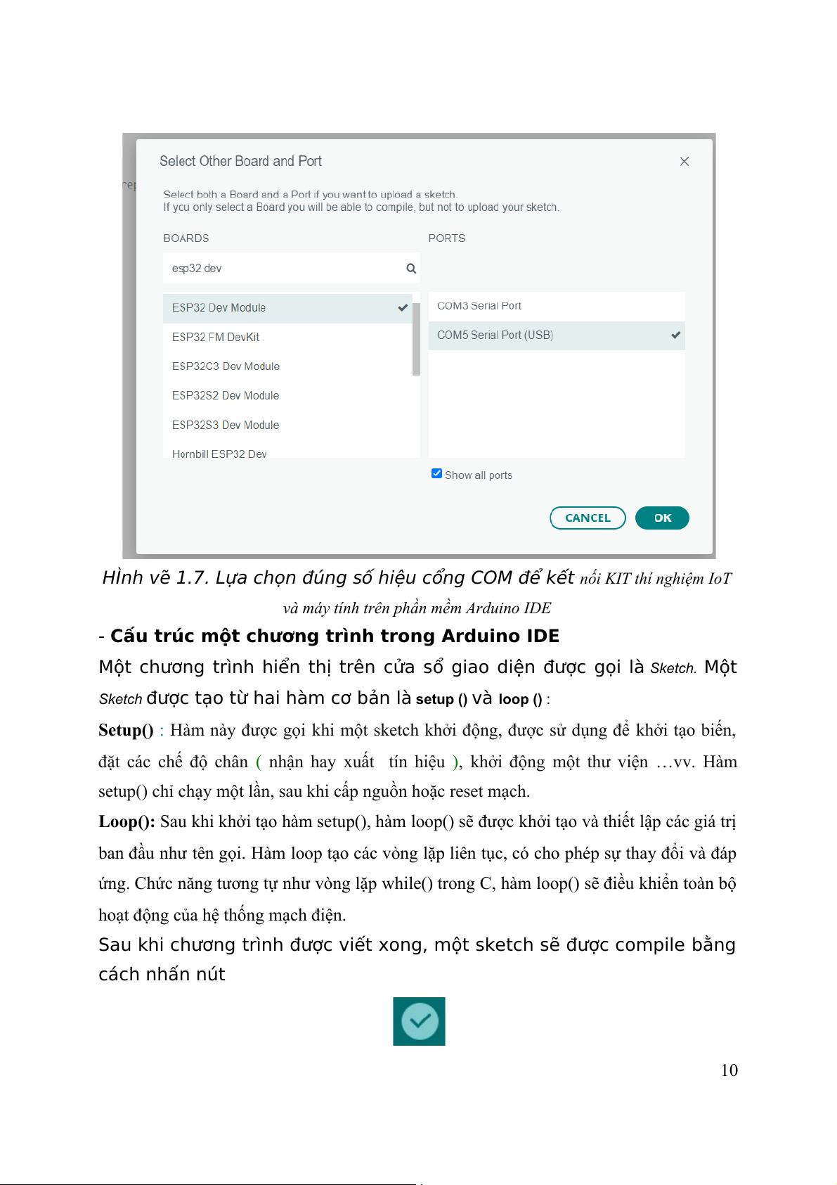 KIT thí nghiệm IoT tương thích và được IDE Arduino nhận diện dưới tên ESP32 Dev 4