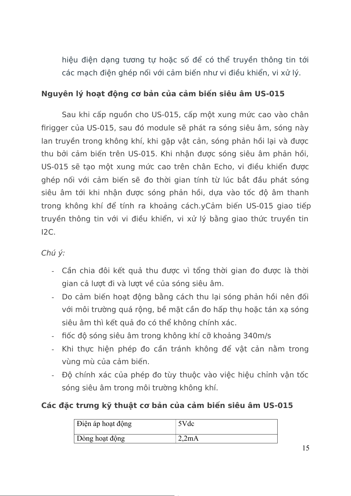trong không khí để tính ra khoảng cách.yCảm biến US-015 giao tiếp