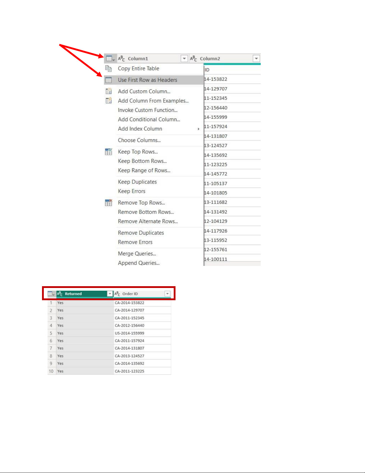 c 4: Nếu chọn Transform/Chọn tiếp từng sheet để kiểm tra dữ liệu, sheet Return: