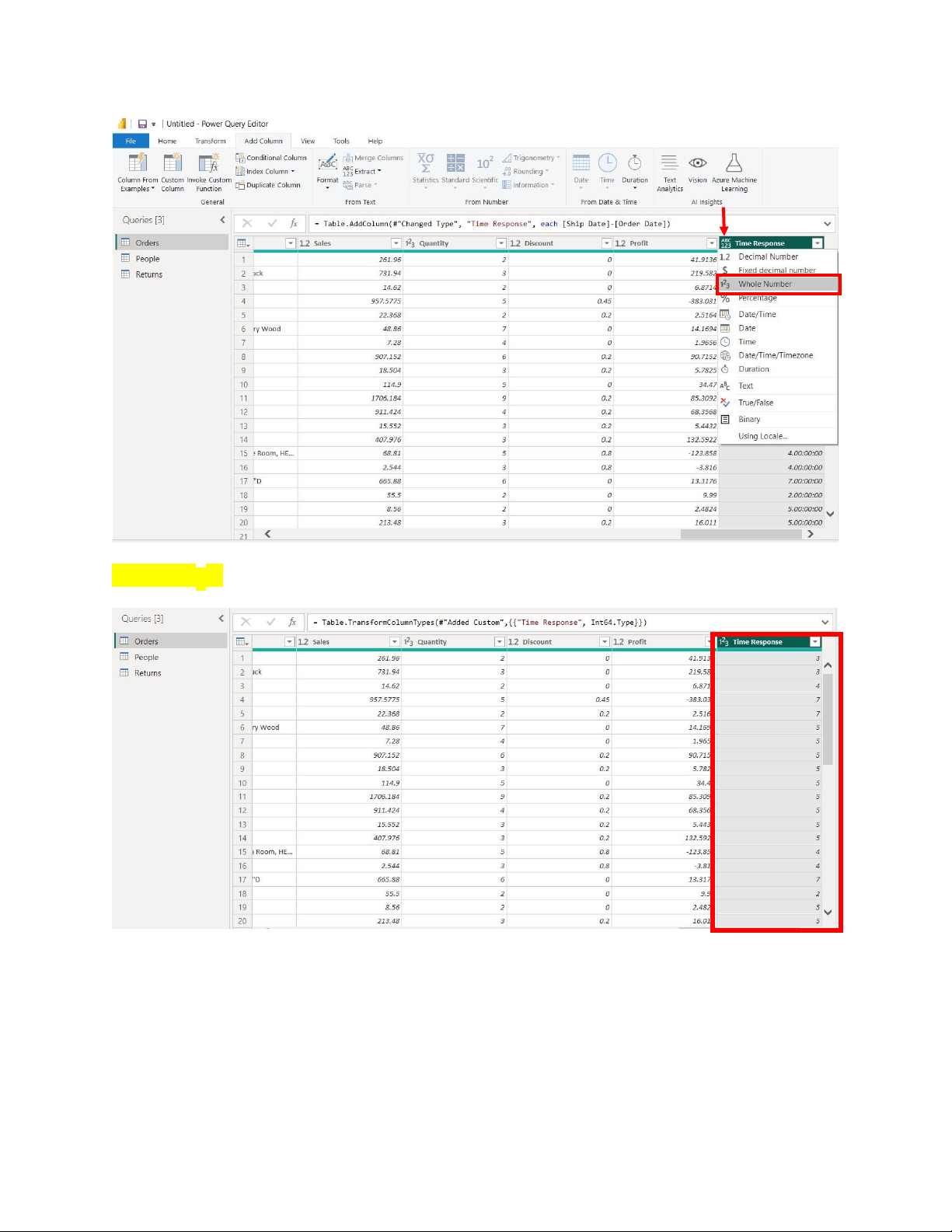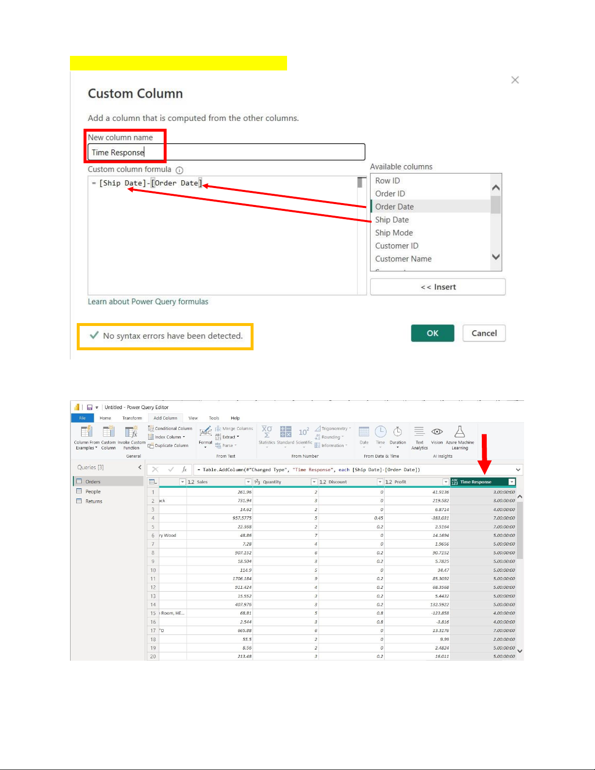 về số ngày xử lý đơn đặt hàng của khách hàng. Thêm cột mới như sau: