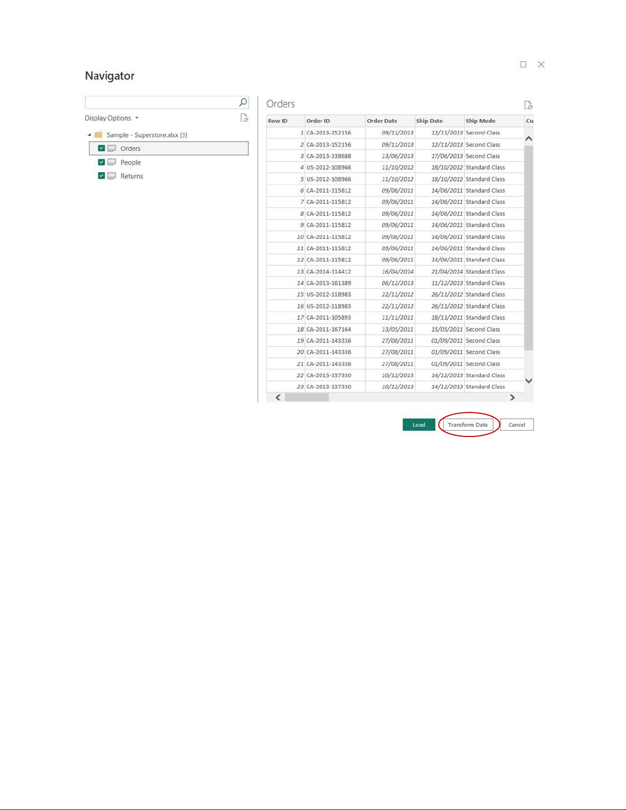 Bước 3: Chọn Transform Data để tiền xử lý dữ liệu nếu cần.