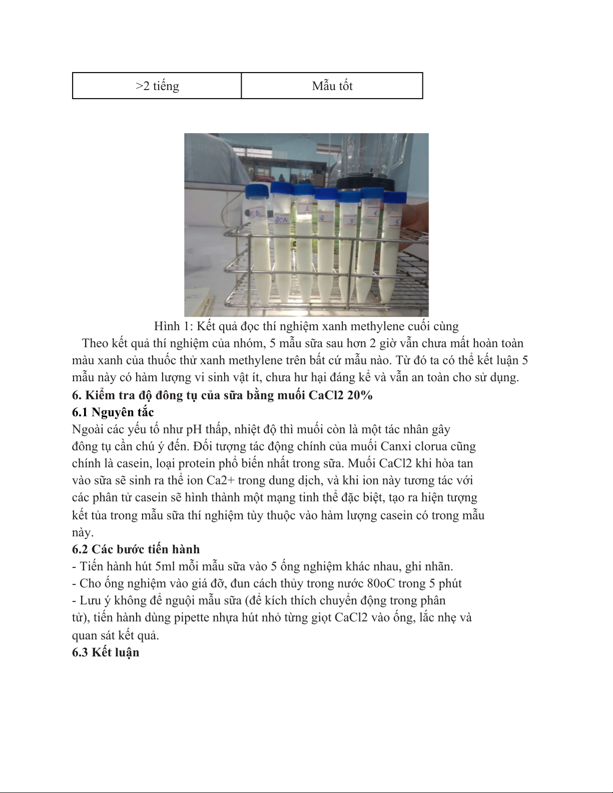 6. Kiểm tra độ đông tụ của sữa bằng muối CaCl2 20% 6.1 Nguyên tắc