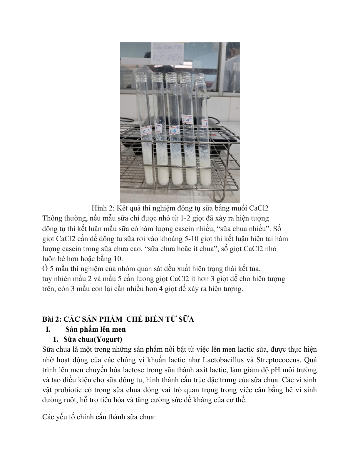 Hình 2: Kết quả thí nghiệm đông tụ sữa bằng muối CaCl2