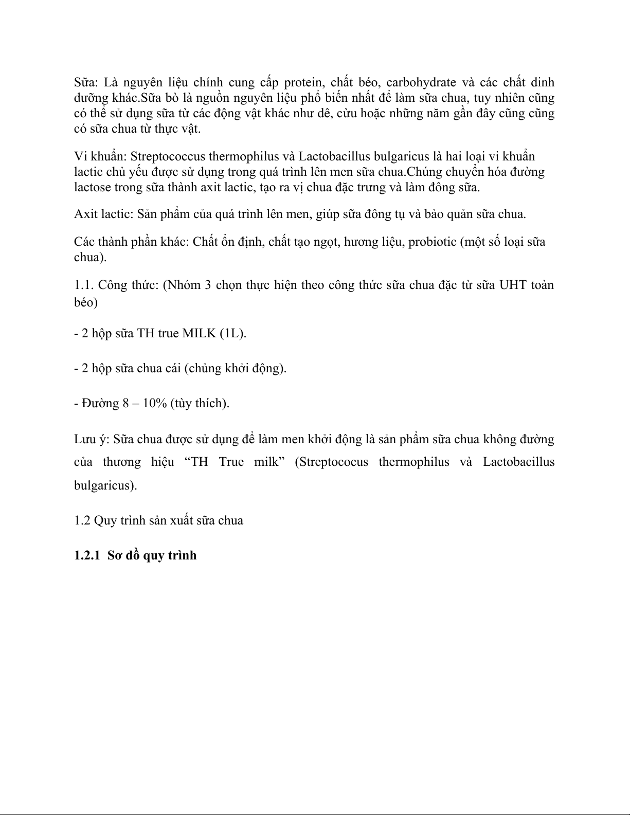 1.1. Công thức: (Nhóm 3 chọn thực hiện theo công thức sữa chua đặc từ sữa UHT toàn béo)