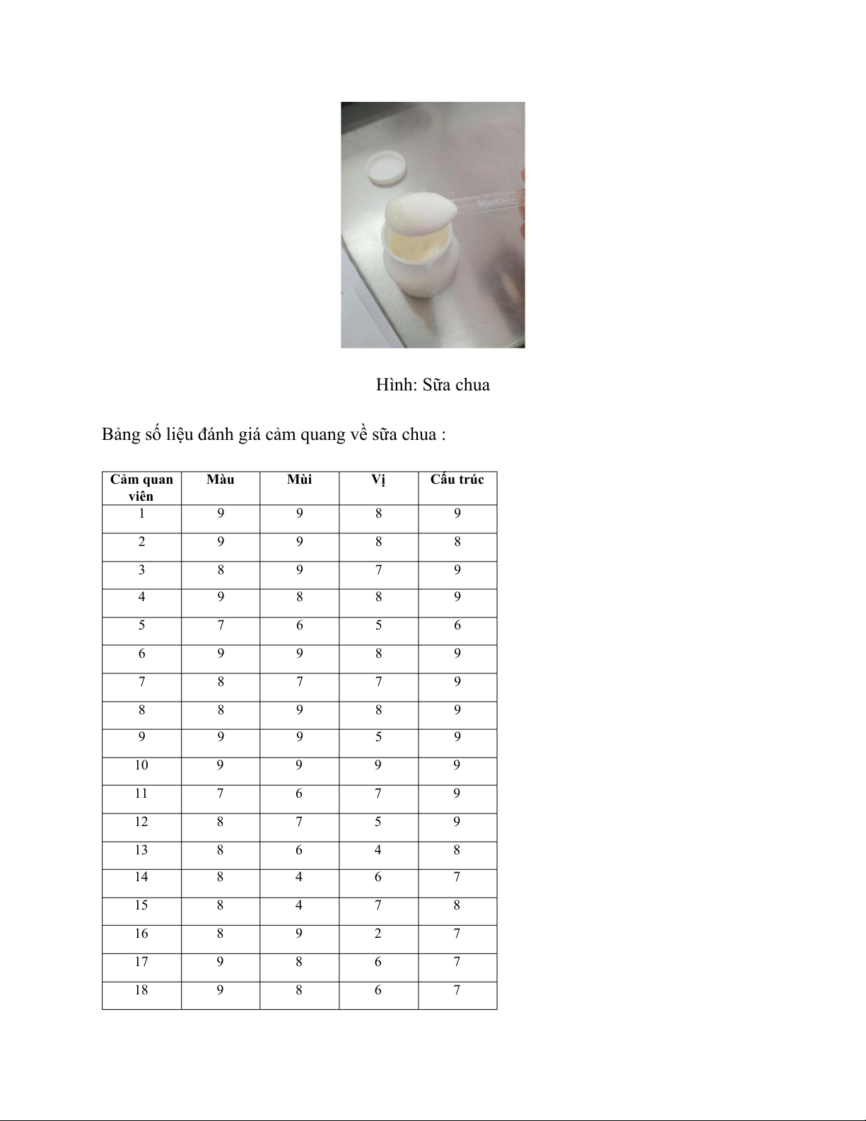 (không thích không ghét) đến 6 (tương đối thích). Cấu trúc của sữa chua được đánh