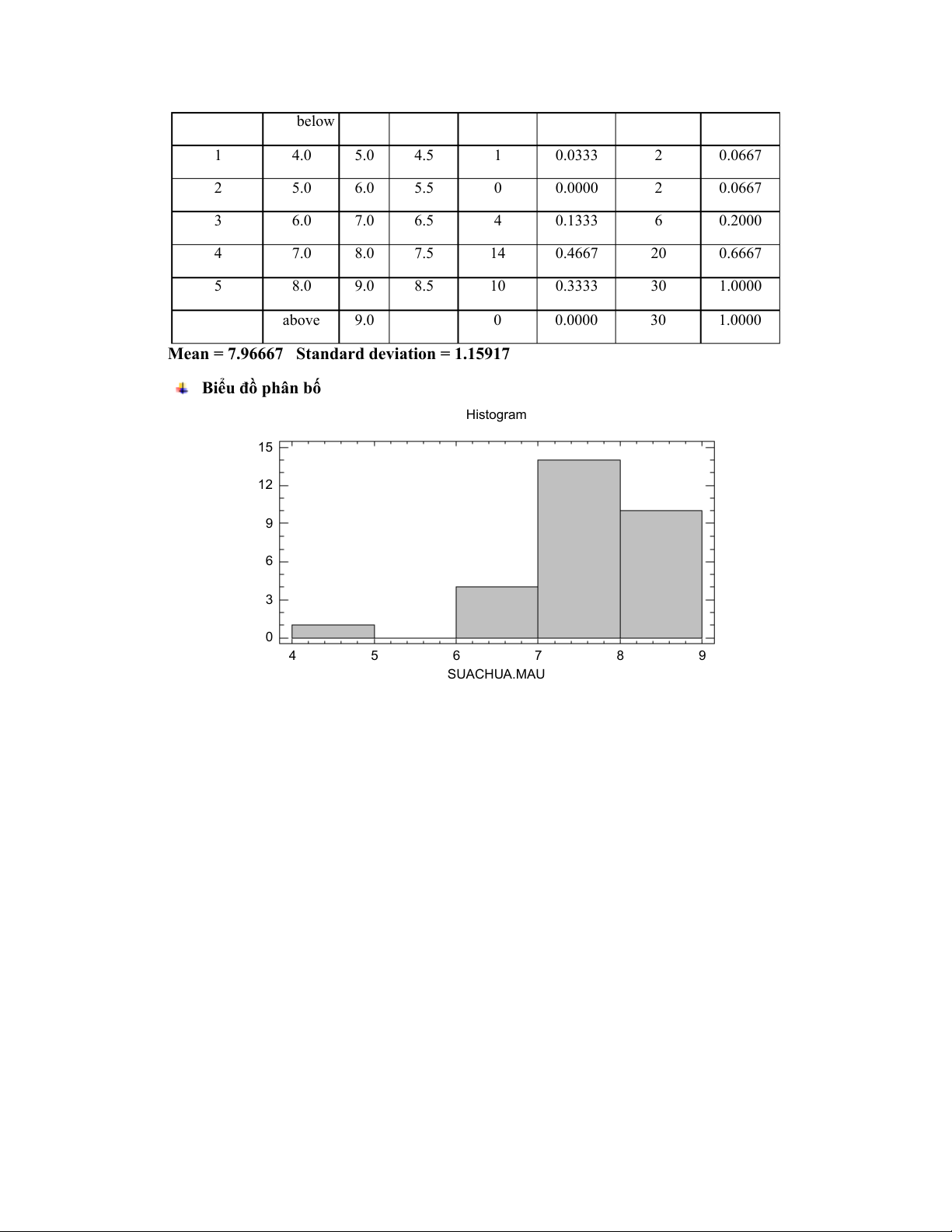 Mean = 7.9 Standard deviation = 1.56139 - Biểu đồ phân bố Histogram 15 12 y 9 c n e u q 6 fre 3 0 0 2 4 6 8 10 SUACHUA.CAU TRUC Tổng thể -