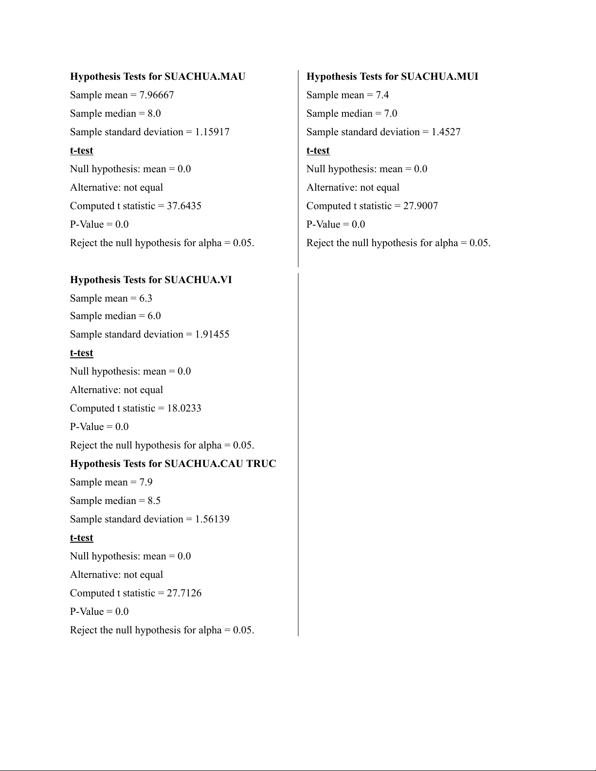 Hypothesis Tests for SUACHUA.MUI Sample mean = 7.96667 Sample mean = 7.4 Sample median = 8.0 Sample median = 7.0