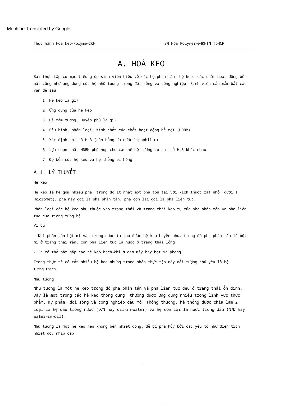 Thực hành Hóa keo-Polyme-CKH BM Hóa Polymer-ĐHKHTN TpHCM Machine Translated by Google =