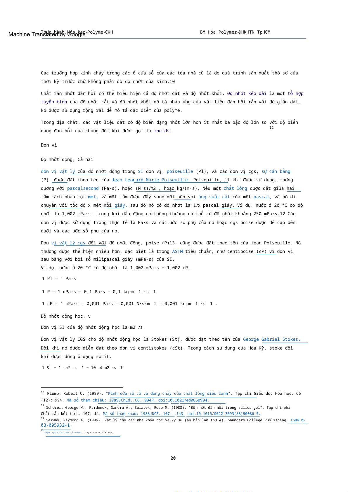 12 Serway, Raymond A. (1996). Vật lý cho các nhà khoa học và kỹ sư (ấn bản lần thứ 4). Saunders College Publishing. ISBN 0- 03-005932-1. 13 "Định nghĩa của IUPAC về Poise". Truy cập ngày 14-9-2010. 20