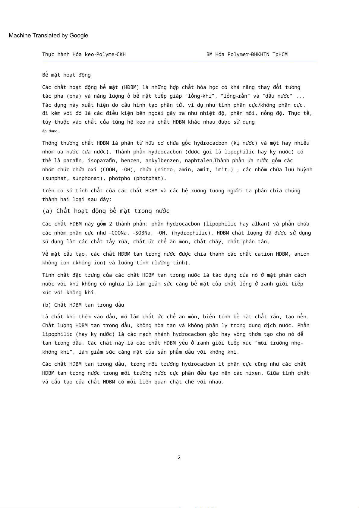 và cấu tạo của chất HDBM có mối liên quan chặt chẽ với nhau. 2 Machine Translated by Google