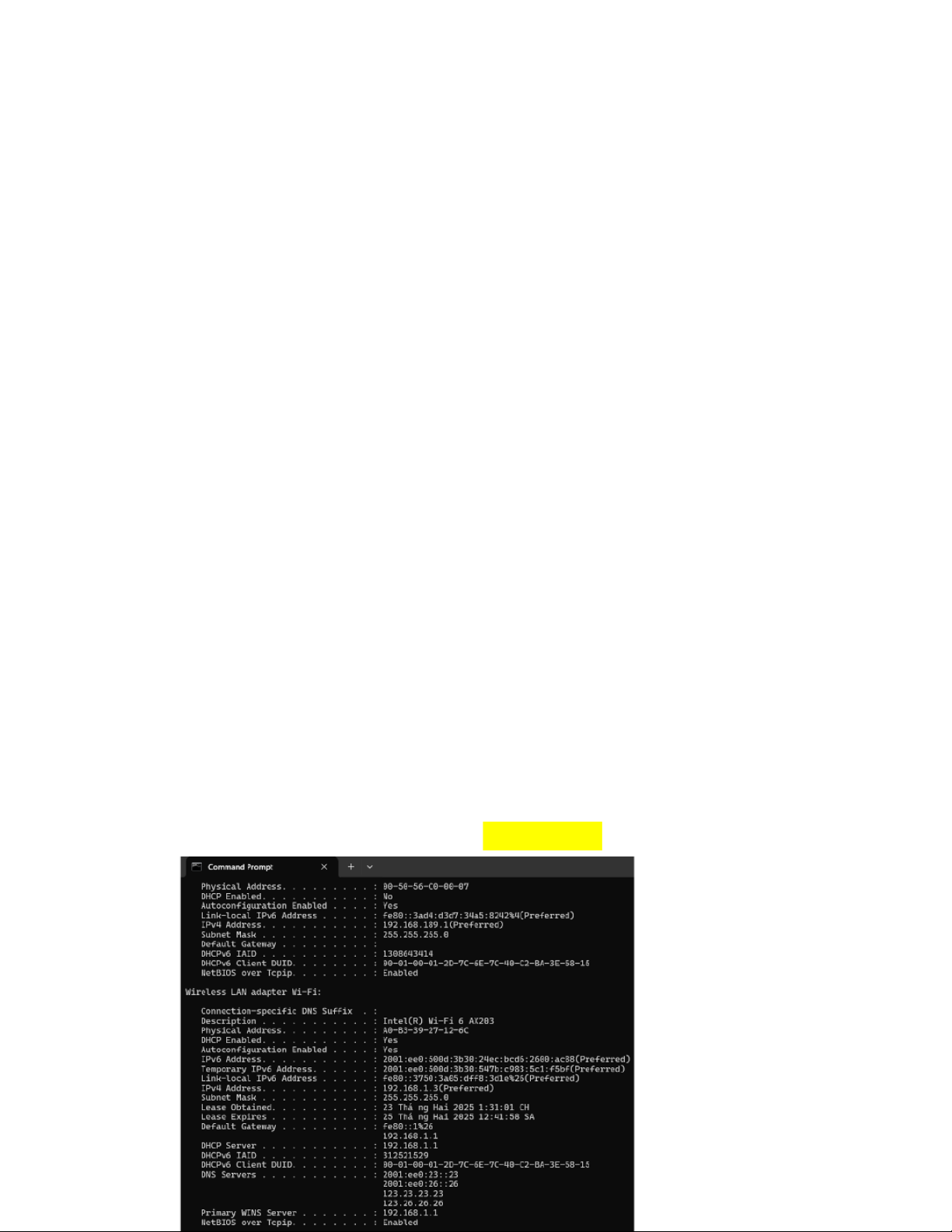ipconfig hiển thị địa chỉ IP, subnet mask, gateway, DNS. b) Cú pháp: ipconfig /all ipconfig /release ipconfig /renew ipconfig /flushdns