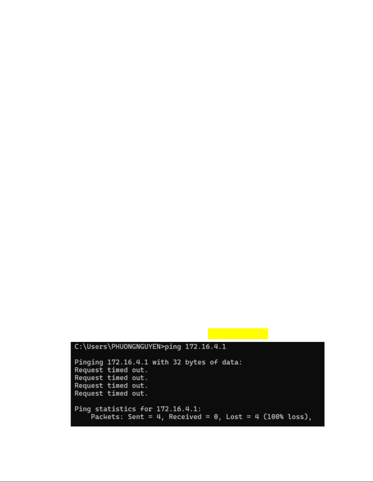 a) Lệnh 1: Kiểm tra kết nối với IP cụ thể ping 172.16.4.1 Phân tích kết quả: