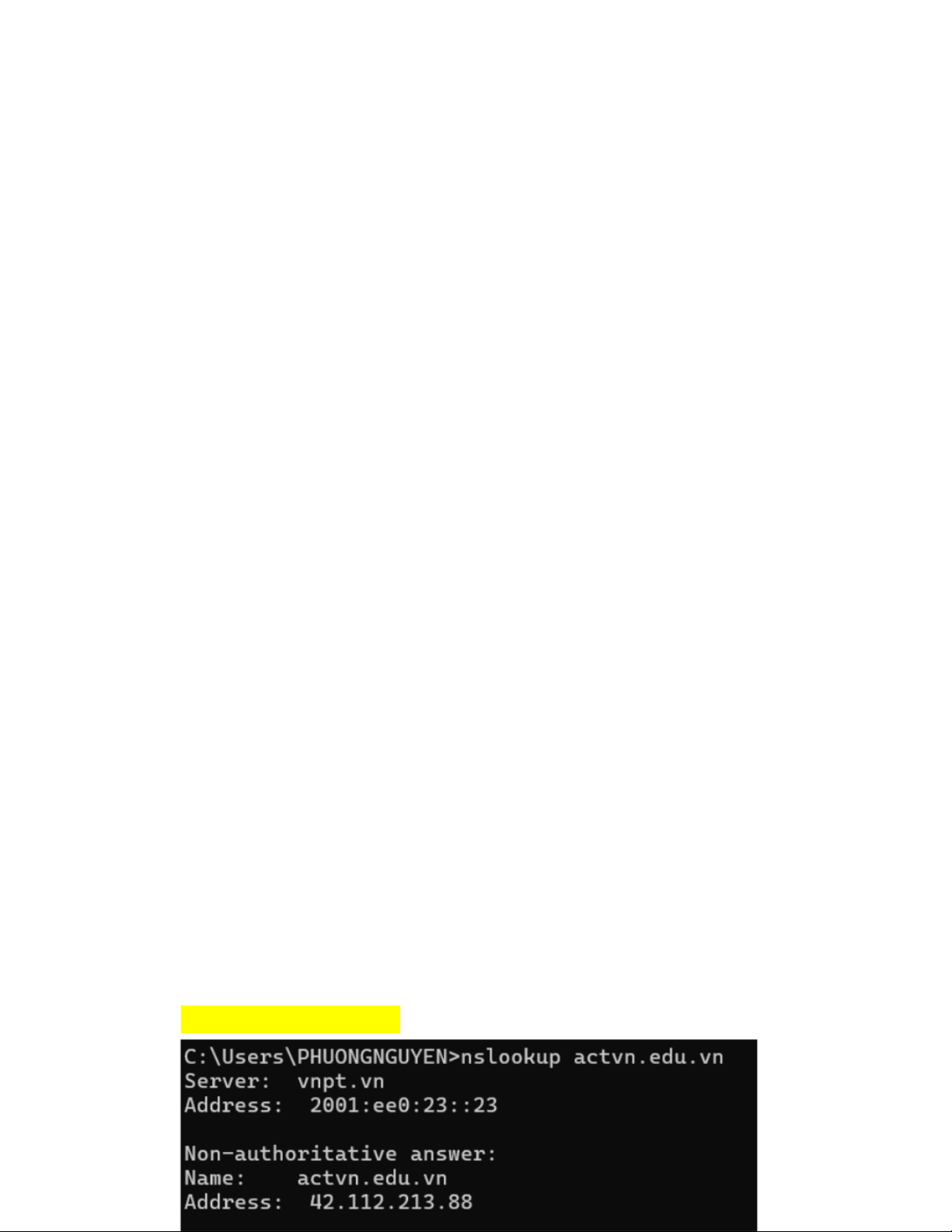 Phần trả lời từ DNS (Non-authoritative answer): Name: actvn.edu.vn Address: 42.112.213.88