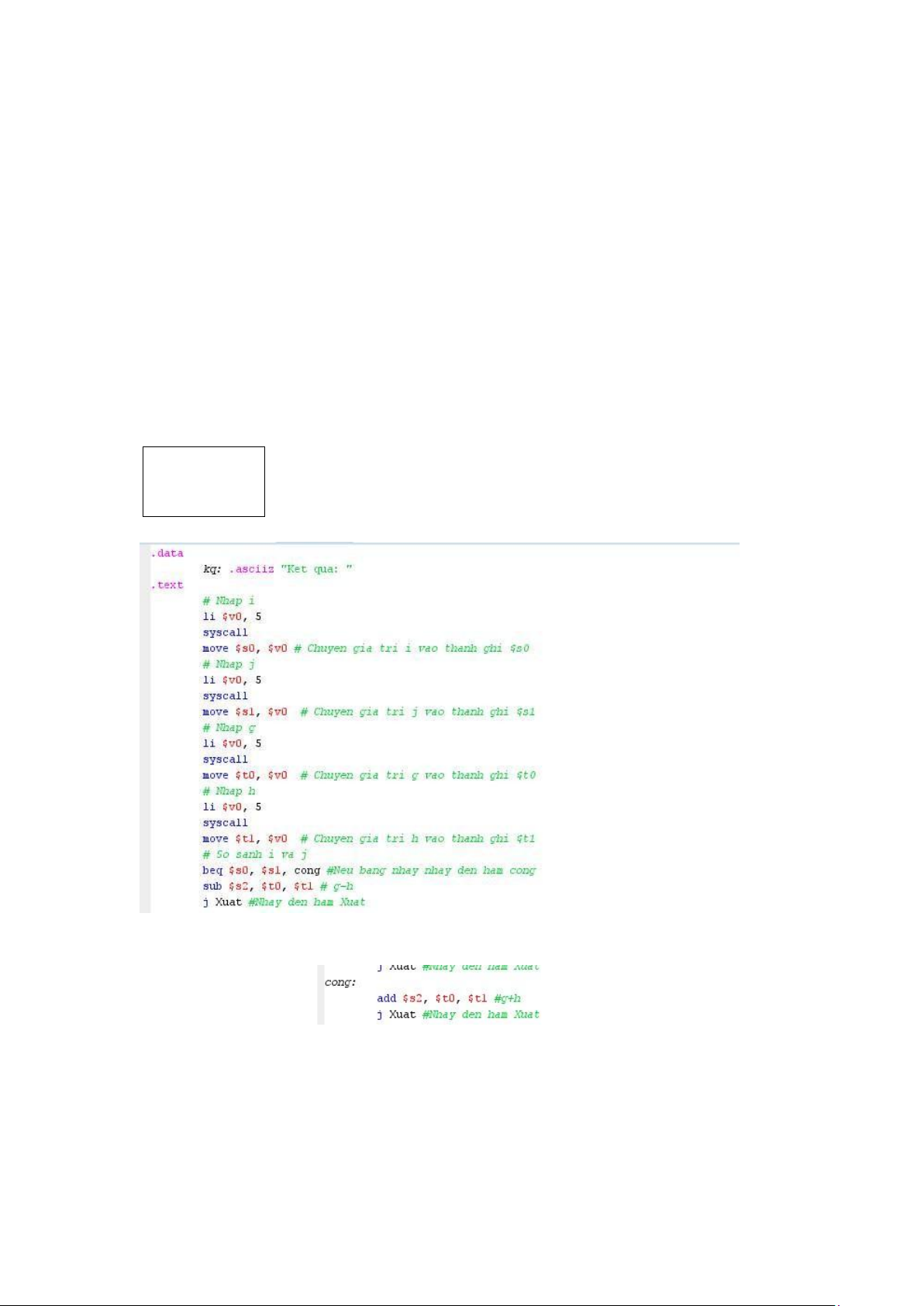 Chuyển đoạn code trong bảng theo sau sang MIPS và sử dụng MARS để kiểm tra lại kết quả: If (i == j) f = g + h; else f = g – h;