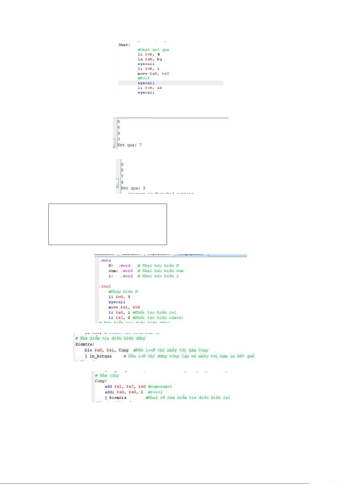 Hình 6. Nhập N và khởi tạo 2 biến sum, I. Hình 7. Hàm kiemtra. Hình 8. Hàm Cong lOMoAR cPSD| 59285474