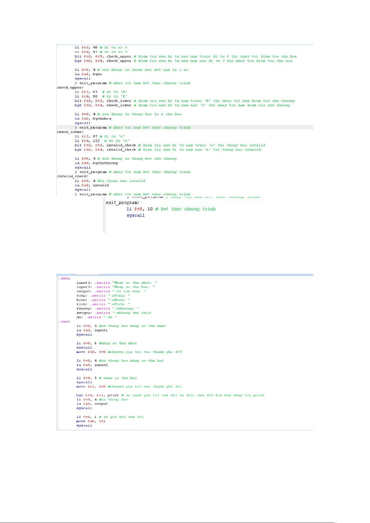 b. Nhập từ bàn phím 2 số nguyên, in ra cửa sổ I/O của MARS theo từng yêu cầu sau: - Số lớn hơn