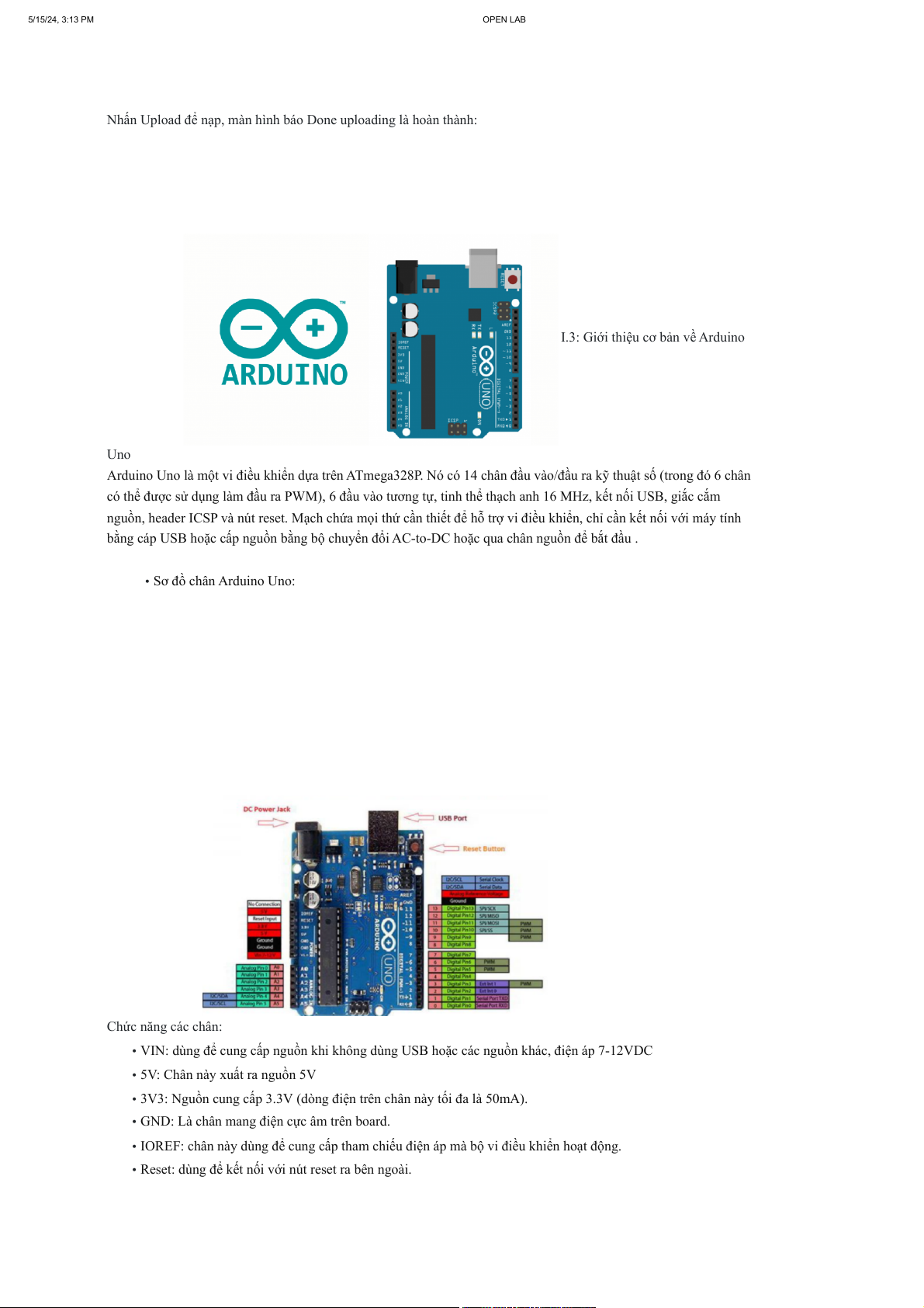 • Reset: dùng để kết nối với nút reset ra bên ngoài. 5/15/24, 3:13 PM OPEN LAB