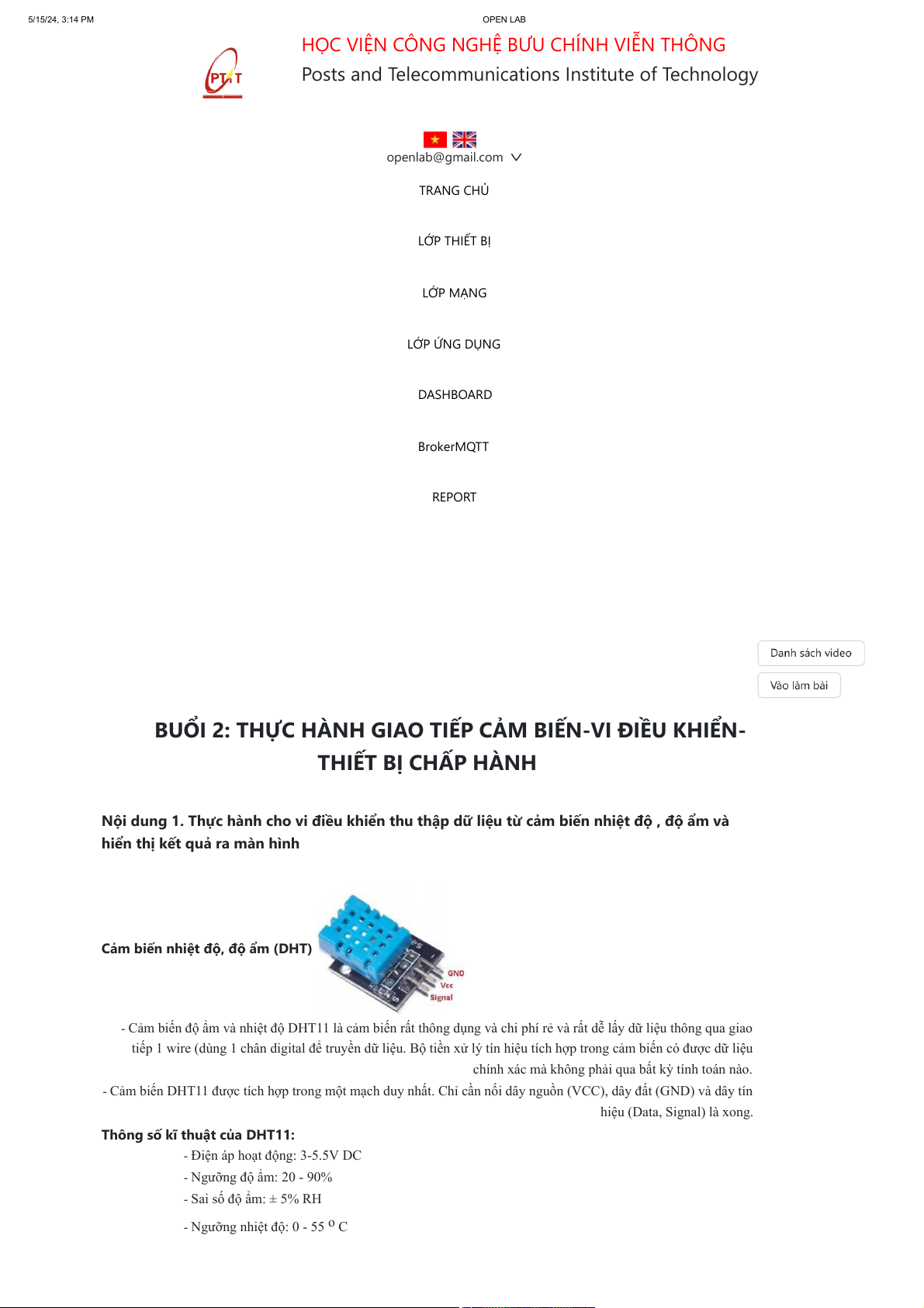 Posts and Telecommunications Institute of Technology openlab@gmail.com TRANG CHỦ LỚP THIẾT BỊ LỚP MẠNG LỚP ỨNG DỤNG DASHBOARD BrokerMQTT REPORT