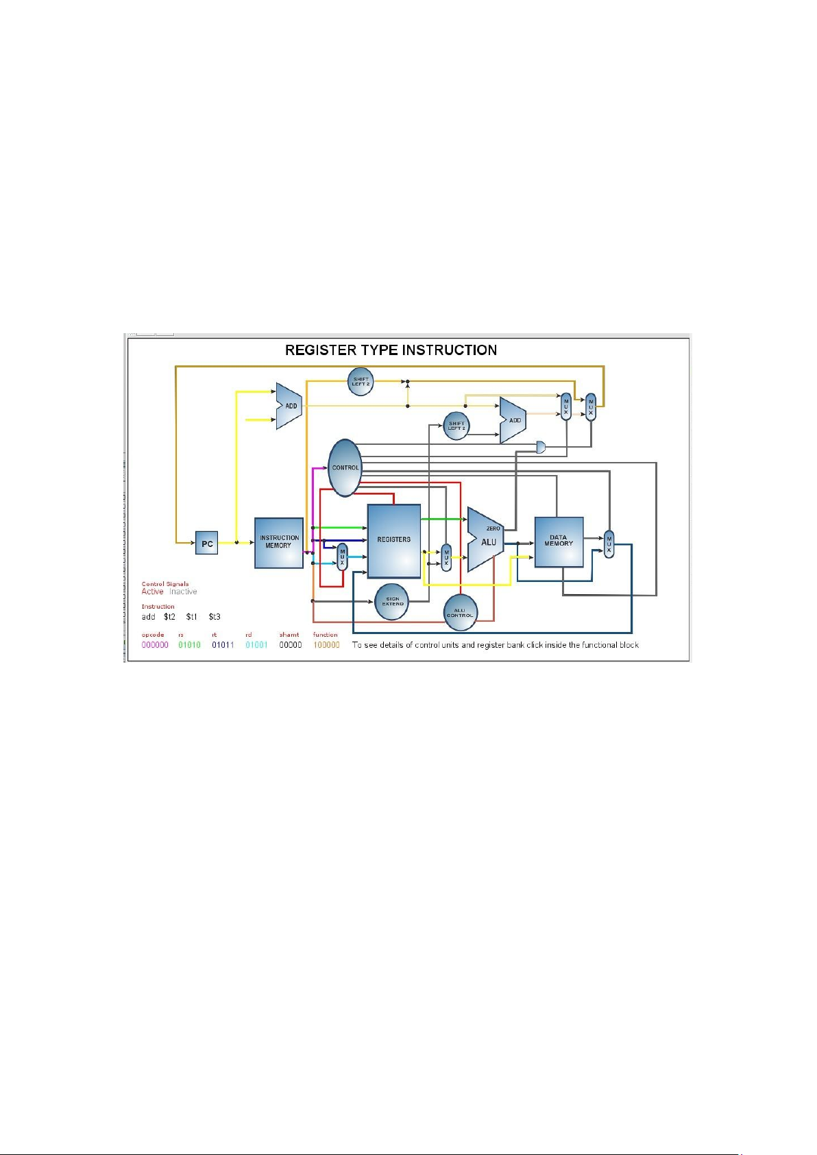 1. Chạy và quan sát quá trình xử lý các lệnh sau thông qua datapath trên MARS. • add $t1,$t2,$t3.